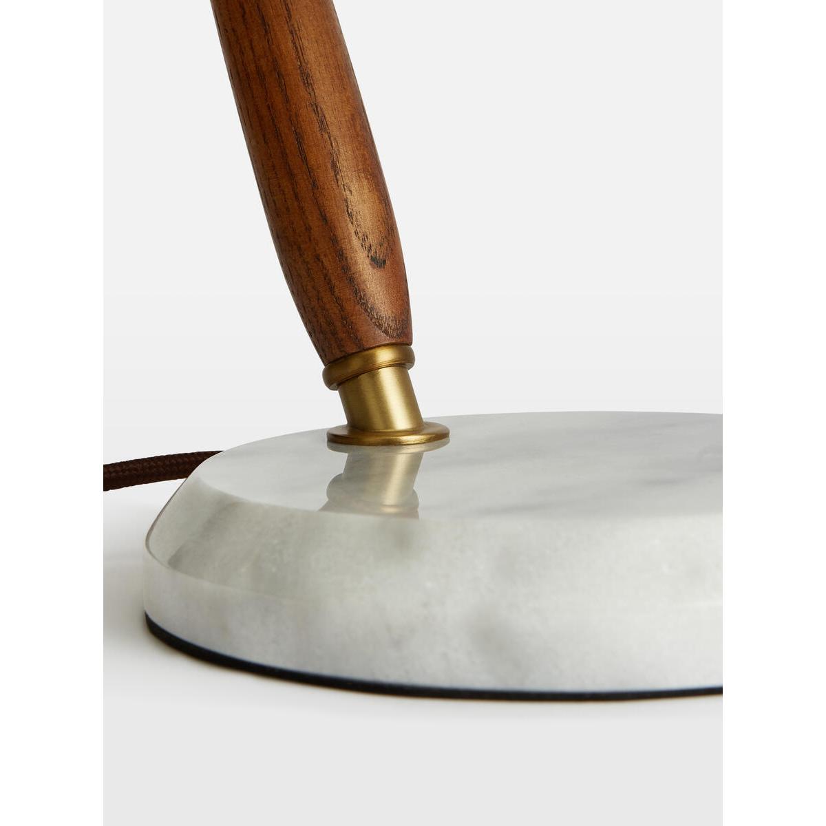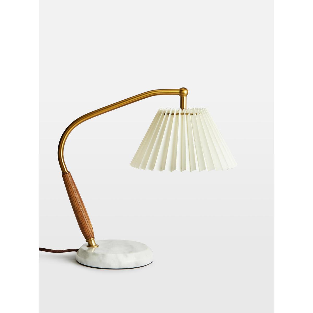 A vintage-inspired lighting option, the Dotty table lamp ischaracterised by a Carrera marble base, an antique brass arm withoak detail, and a pleated paper shade. Ideal for desks, or creatinglow-level lighting in a living area, use the lamp to bring the warmambience of Soho House 76 Dean Street into your home. Antique brass arm. Oak detail. Pleated paper shade. Requires one x E14 Golfball bulb/ max 40W bulb. Inspired by Soho House 76 Dean Street.