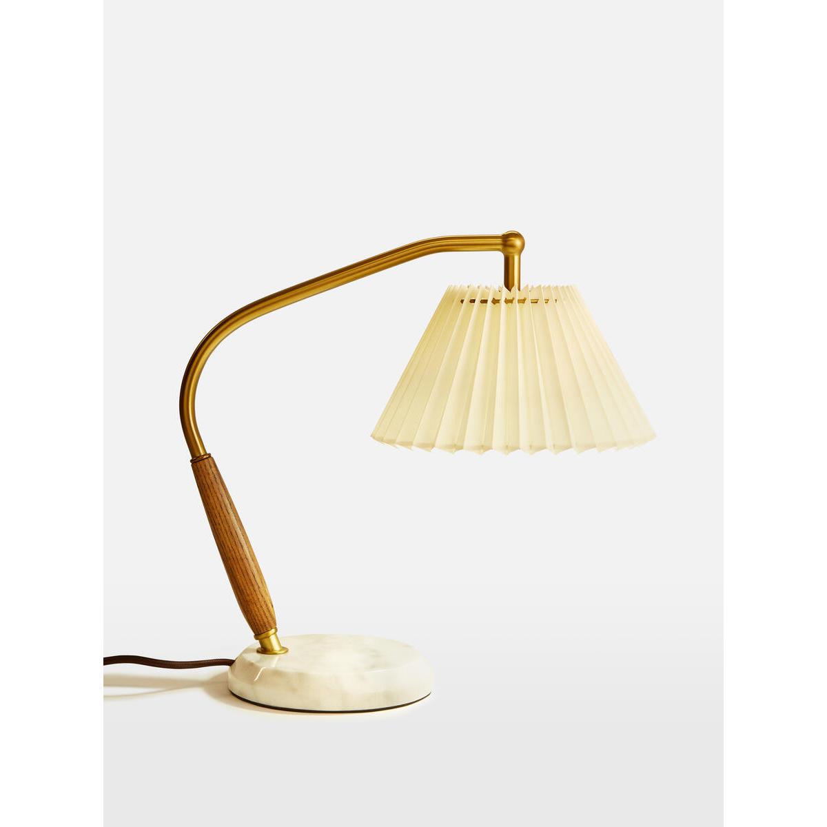 I love this little lamp for its charming blend of vintage-inspired details and versatile style. It works beautifully in cosy bedside settings or on a side table in a relaxed living room, adding a warm, inviting glow. The combination of the brass arm and the pleated shade makes it a great statement piece that complements both eclectic and more pared-back interiors. For practical styling, try pairing it with textured fabrics or natural materials to highlight its earthy tones and soft silhouette. It’s especially effective in spaces where you want a touch of character without overwhelming the decor.