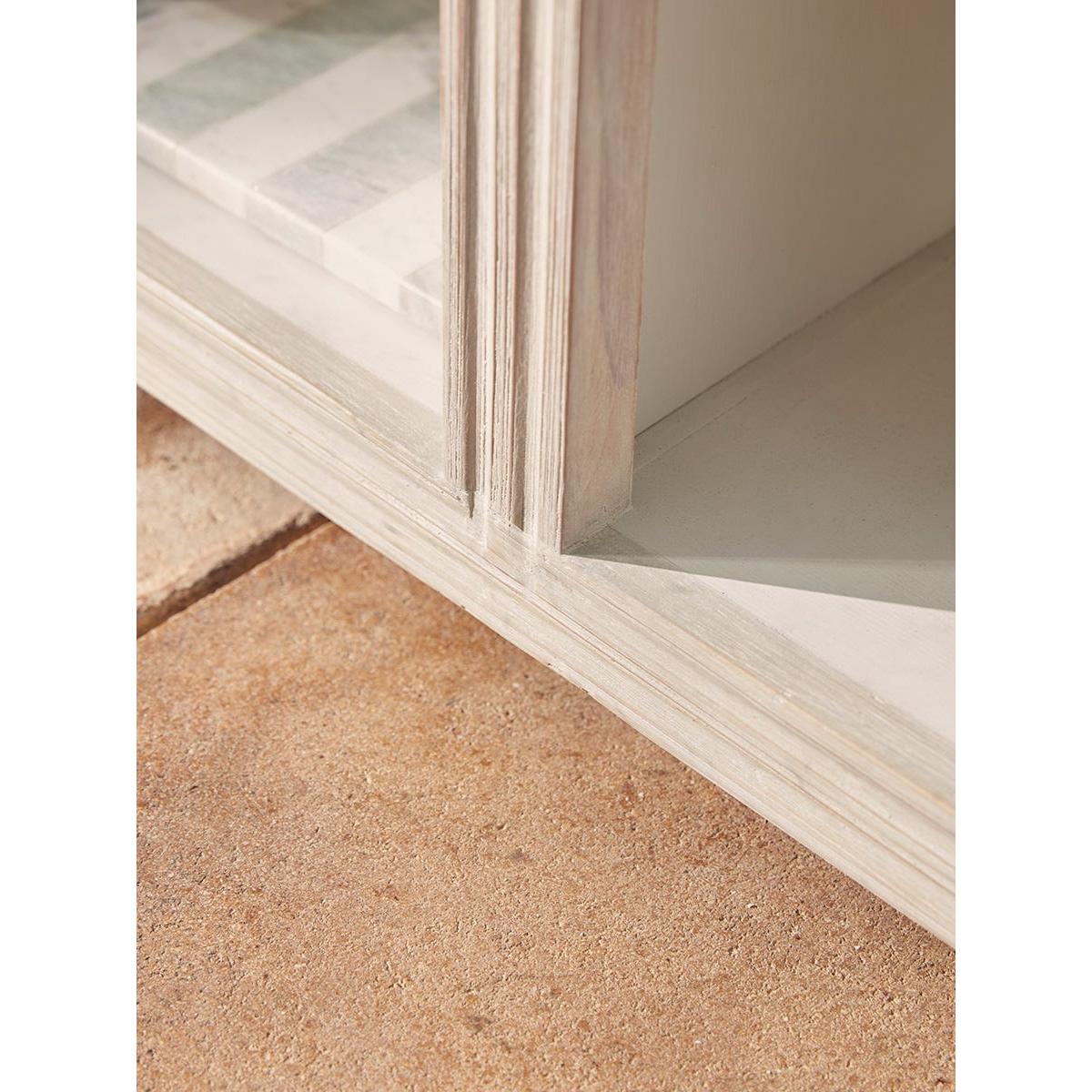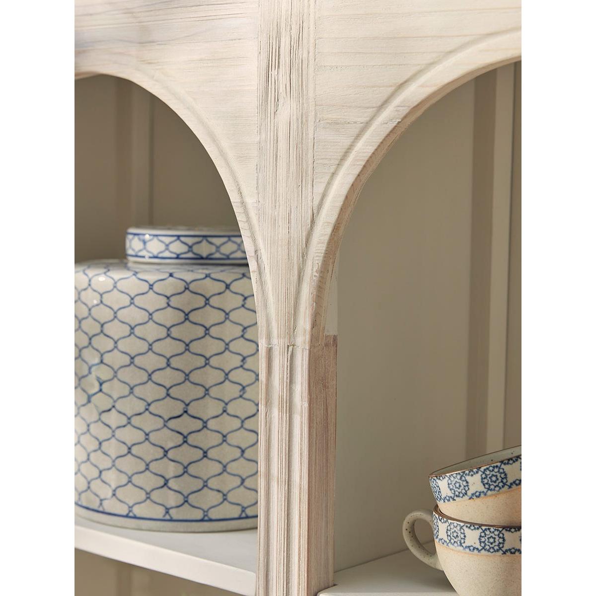 Display decorative accessories, books, plants, and even your finest dinnerware in our Double Arched Shelf Unit. Crafted from a recycled pine, the wood has a slightly distressed finish which highlights the natural patina of the wood for a softness that works wonderfully with the curved arch frame. Perfect in a home that celebrates a calming and serene energy, this selving unit is part of our French Blue collection.