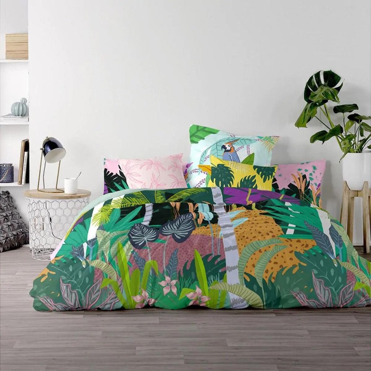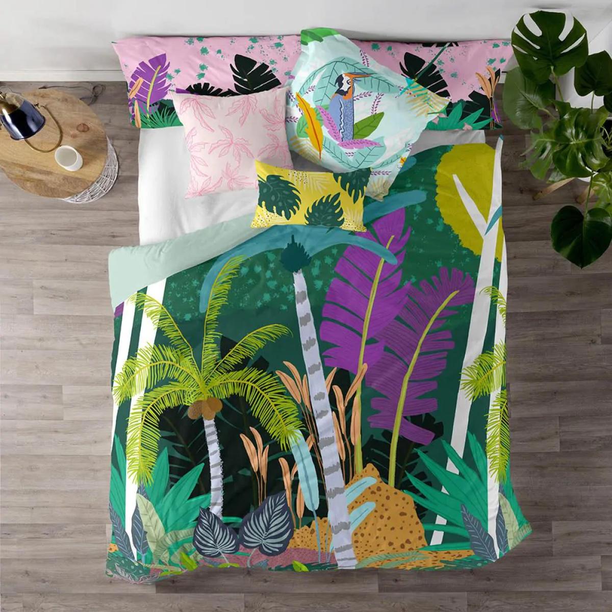 The double Bali bedding set is the perfect way to make a vibrant statement in your bedroom, with pops of colour and a unique jungle print giving a bold style to this duvet and pillowcase combination. The jungle print features a huge mash-up of bold colours – this looks great in an eccentric modern space! With a 100% cotton design, the bedding is also great for comfort and helps you to drift off to sleep in a soothing, comforting environment.