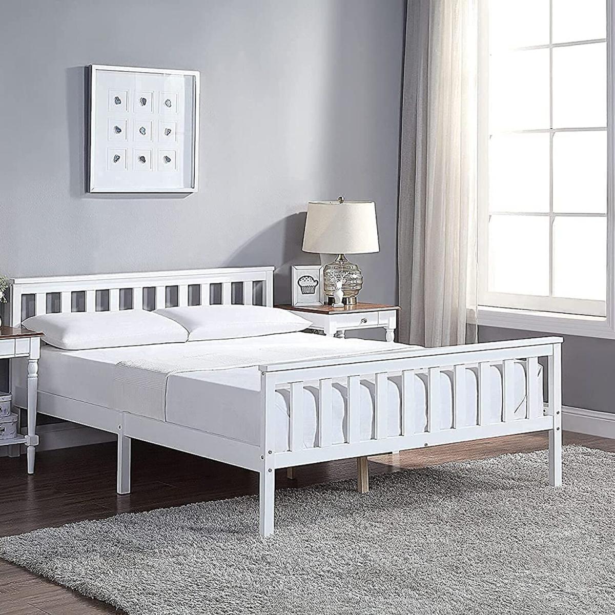 Double Bed Frame 4ft 6 Solid Pine White Wooden Bed - White / Yes