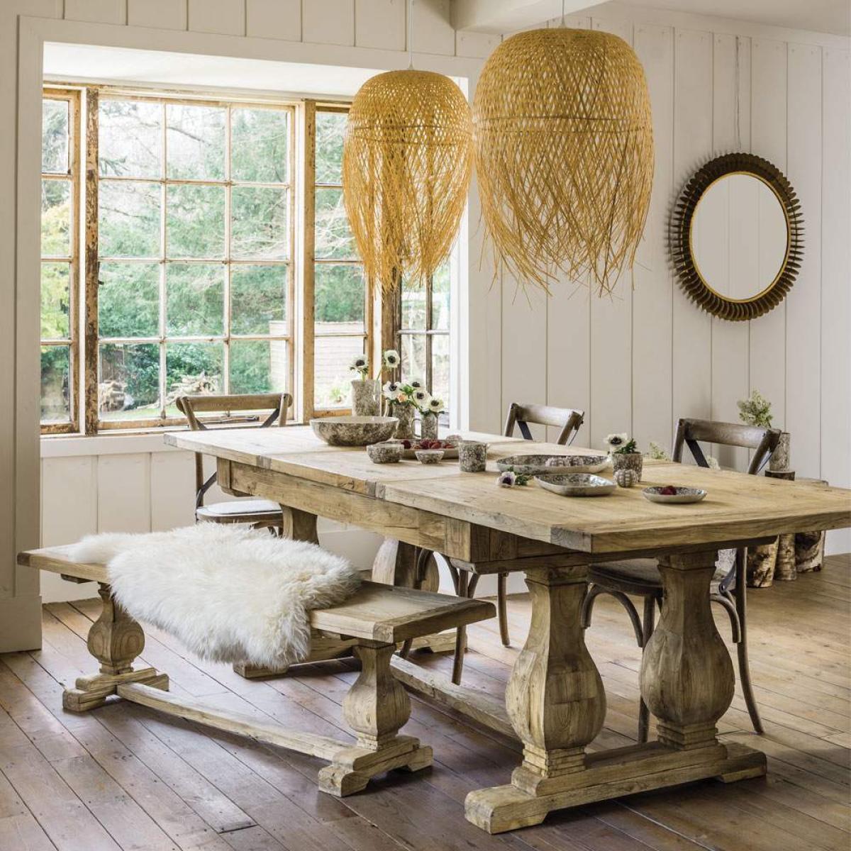 I love this table for its rustic charm and versatility. The reclaimed elm adds warmth and an authentic texture that works well in both country-style and more contemporary interiors. Its extendable feature makes it practical for both everyday family meals and larger gatherings, making it a flexible piece for different occasions. To style around it, consider pairing with a mix of vintage and modern chairs to keep the look relaxed yet curated. A neutral or natural fibre rug underneath helps ground the space, while simple tableware and greenery keep the setting fresh and inviting. This table is a great investment for creating a warm, welcoming dining area with plenty of personality.