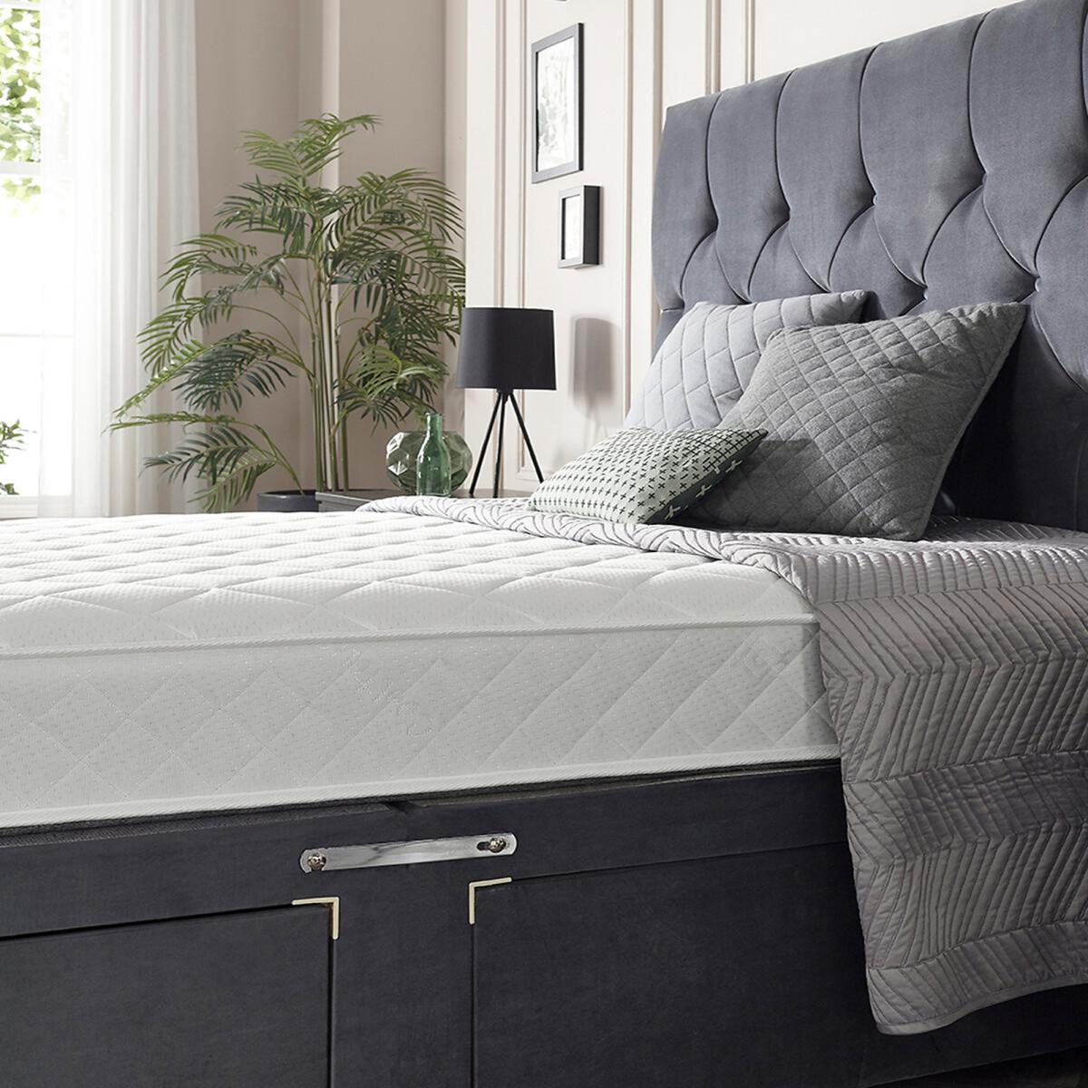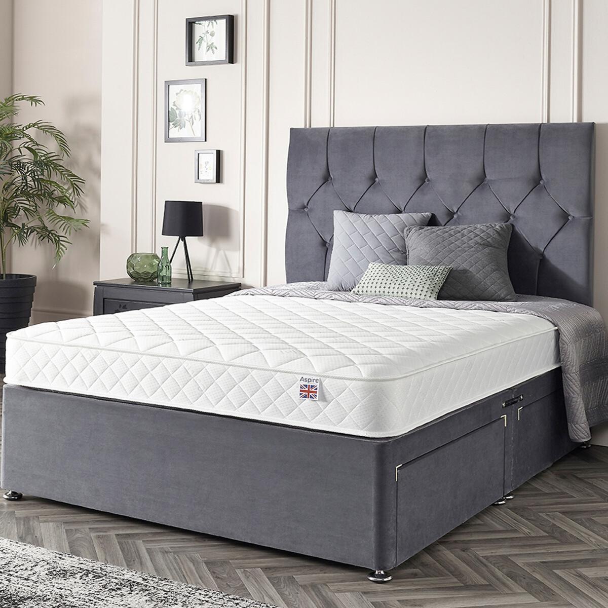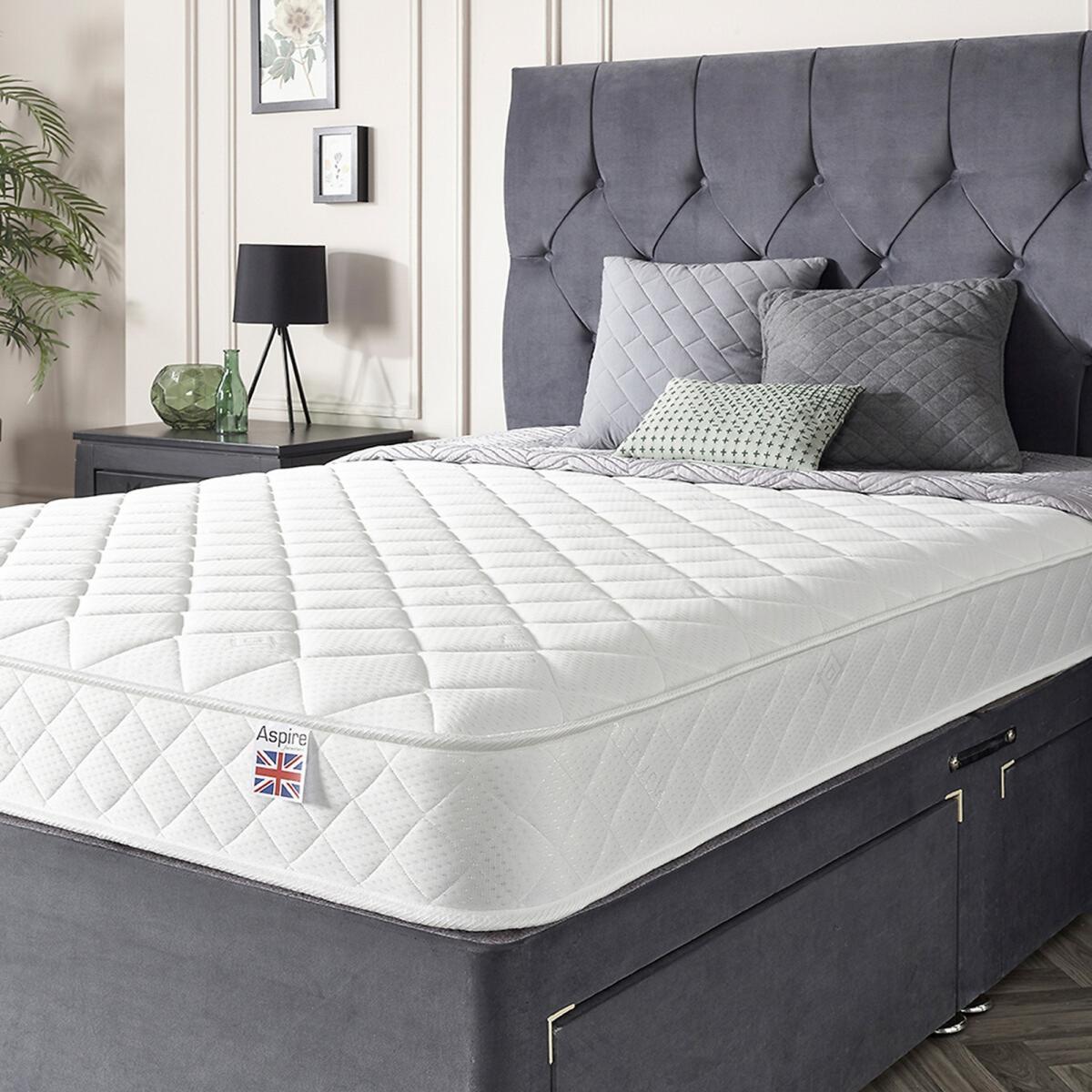 Please note: this product cannot be delivered to all Offshore Islands, Northern Island or Republic of Ireland. Double Comfort Eco Foam Free MattressBONNEL. L SPRUNG OPEN COIL MATTRESS: This 20.5 Cms Deep Bonnell Spring Mattress Features A Premium Spring System With Double The Amount Of Foam Free Comfort Fillings Of Other Budget Mattresses So Creating An Exceptional Class Leading MattressDOUBL. E FILLINGS MEANS DOUBLE COMFORT: We’ve Torn Up The Budget Mattress Rulebook By Doubling The Amount Of Fillings & Doubling The Comfort Compared To Other Budget Mattresses. It’s Budget Mattresses Redesigned Redefined & RevolutionizedASPIRE-COO. L TOUCH AC SLEEP SURFACE: The Aspire-Cool Touch Sleep Surface Is Upto 10 Times More Breathable Than Standard Cooltouch Providing Air-Conditioned Sleep For Your Body By Regulating Core Temperature & Inhibiting Overheating Whilst Asleep. ACTIVE PRESSURE RELIEVING SLEEP SURFACE: Our Sleep Scientists Have Created A Sleep Surface Design With A Luxurious Quilted Design Which Actively Supports The Body’s Key Pressure Points For A Stress Free & Pressure Relieving Night’s SleepU K MADE & EASY SHIPPING: This Mattress Is Designed & Manufactured In The UK & Meets All UK Fire Standards & Utilises Aspire Roll Tech For The Easiest Possible Delivery. The Mattress Is Compressed Rolled & Arrives In An Easy To Handle Box Ready For Unpacking. Product Dimensions: Single: 20.5cmx90cmx190cm. Small Double: 20.5cmx120cmx190cm. Double: 20.5cmx135cmx190cm. King: 20.5cmx150cmx200cm. Please remember to measure your available space before ordering. Packaged Dimensions: Single: 90cmx 38cmx 38cm Weight: 15.5kg. Small Double: 120cmx 38cmx 38cm Weight: 17.5kg. Double: 135cmx 38cmx 38cm Weight: 19.5kg. King: 150cmx 38cmx 38cm Weight: 21.5kg. This product will be dispatched by one of our trusted suppliers. You’ll be contacted by their selected courier about your delivery.