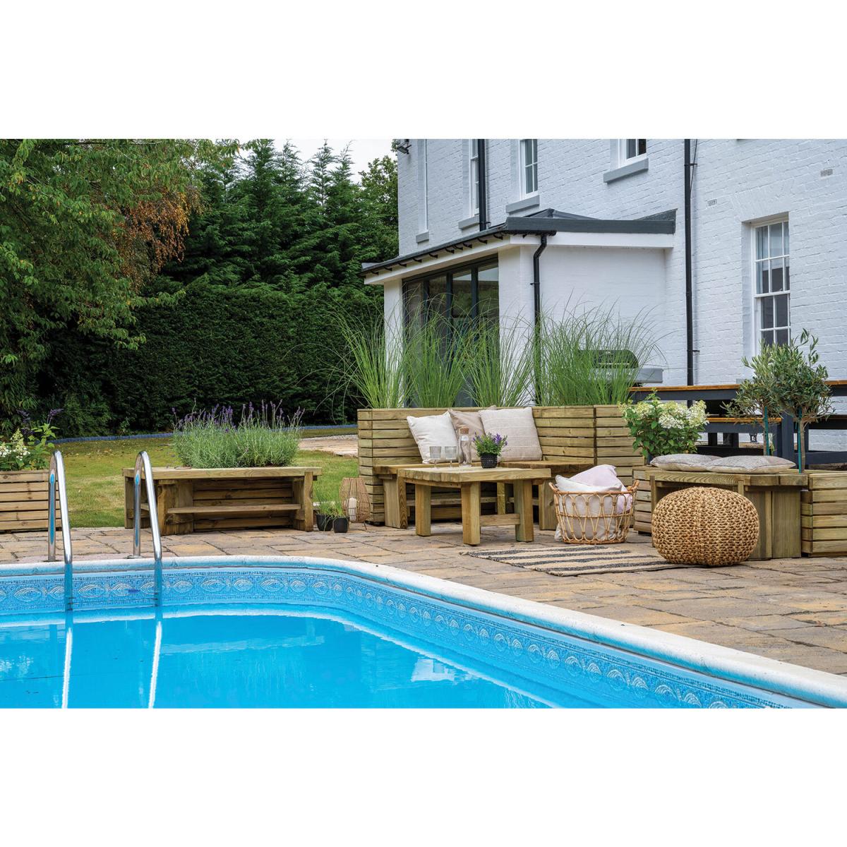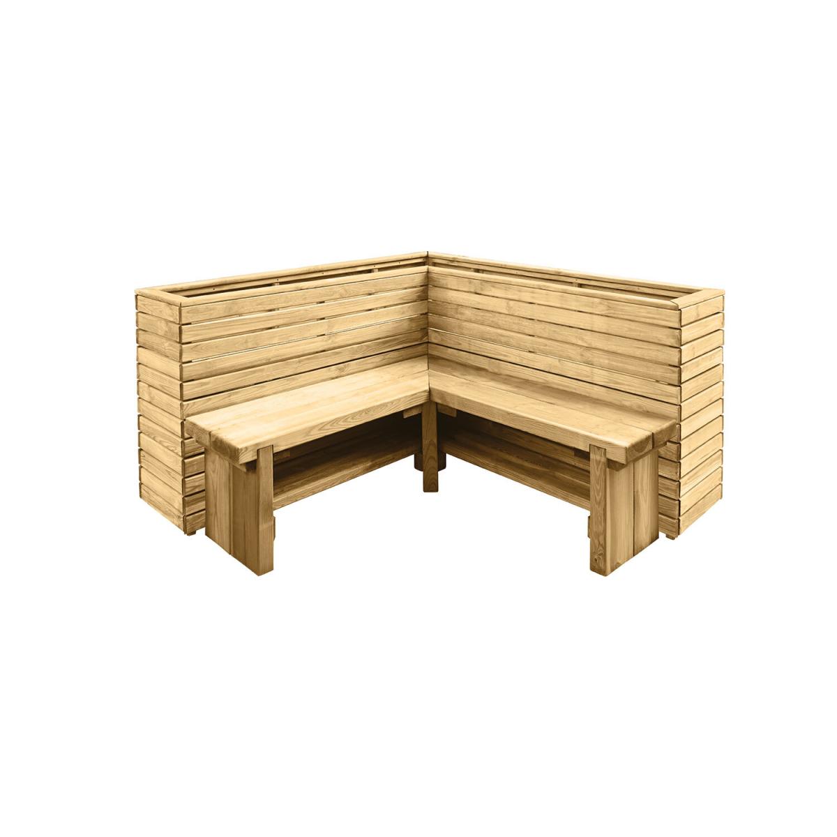 No matter where you place it, the Double Corner Sleeper Bench makes for an eye-catching feature in your garden. The furniture is robust and modern, with simple lines to create a more relaxed, informal look, making this ideal for relaxation or fun with friends and family. When combined with the Linear Corner Planter, the two come together wonderfully, transforming the two into a standout focal point in your garden. The bench is manufactured from pressure treated timber that has been smooth-planed for a splinter-free finish, ensuring it remains comfortable and safe for children. You're also guaranteed a 15-year resistance against rot and fungal decay, giving you plenty of enjoyment from this bench, and many memories to boot.