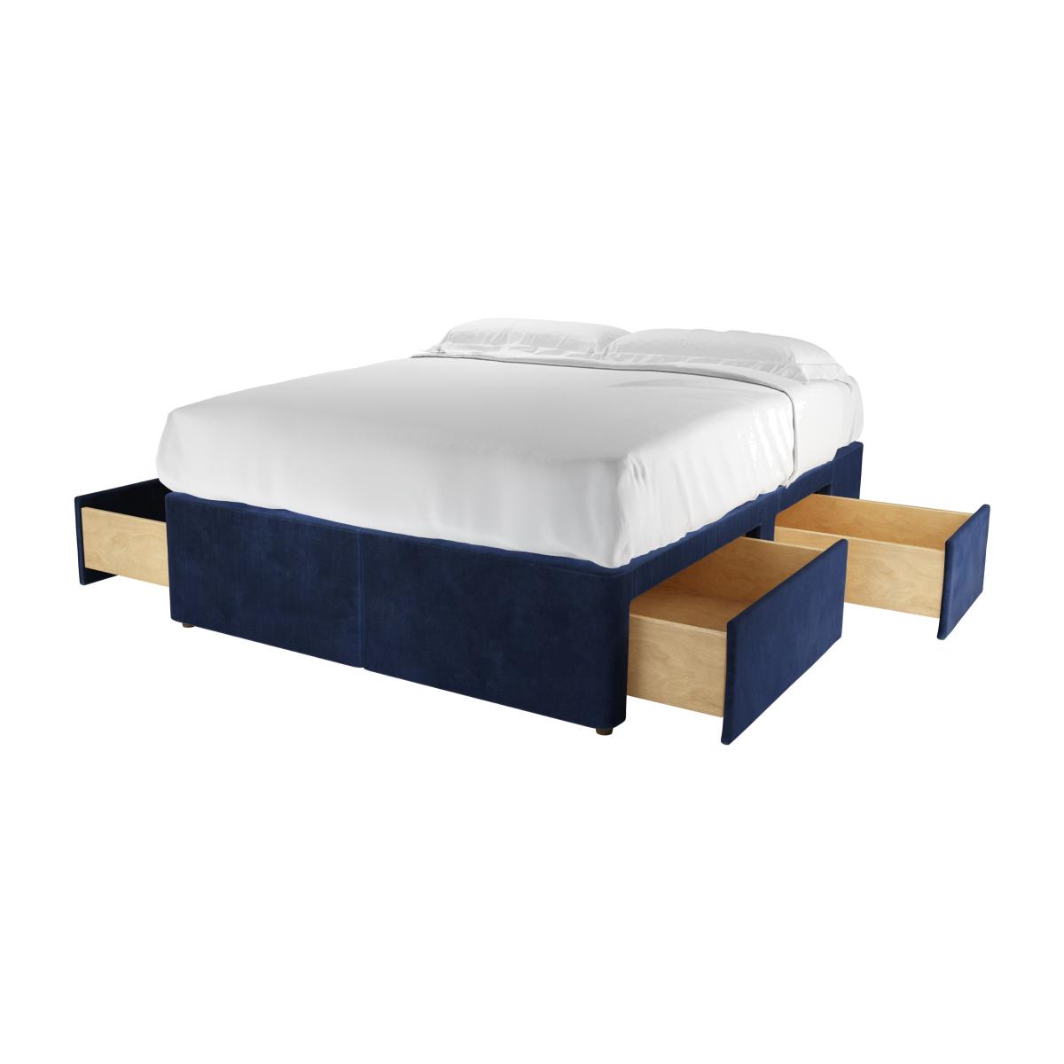 I really like this divan base for its contemporary take on classic design, especially with the Cruise Smart Velvet finish which adds a luxe touch. It works particularly well in modern or boutique-style interiors where colour and texture are key. The navy shade provides a rich, sophisticated backdrop, making it versatile for pairing with both muted tones and bold accents. Practical styling tips include using the drawers for extra storage in smaller rooms, while its low profile gives a sleek, uncluttered look. Layer with crisp bedding and minimal accessories for a clean, polished aesthetic, or add decorative cushions and throws for a cosy, inviting feel. This base is both functional and stylish, making it an excellent choice for a statement yet practical bedroom.