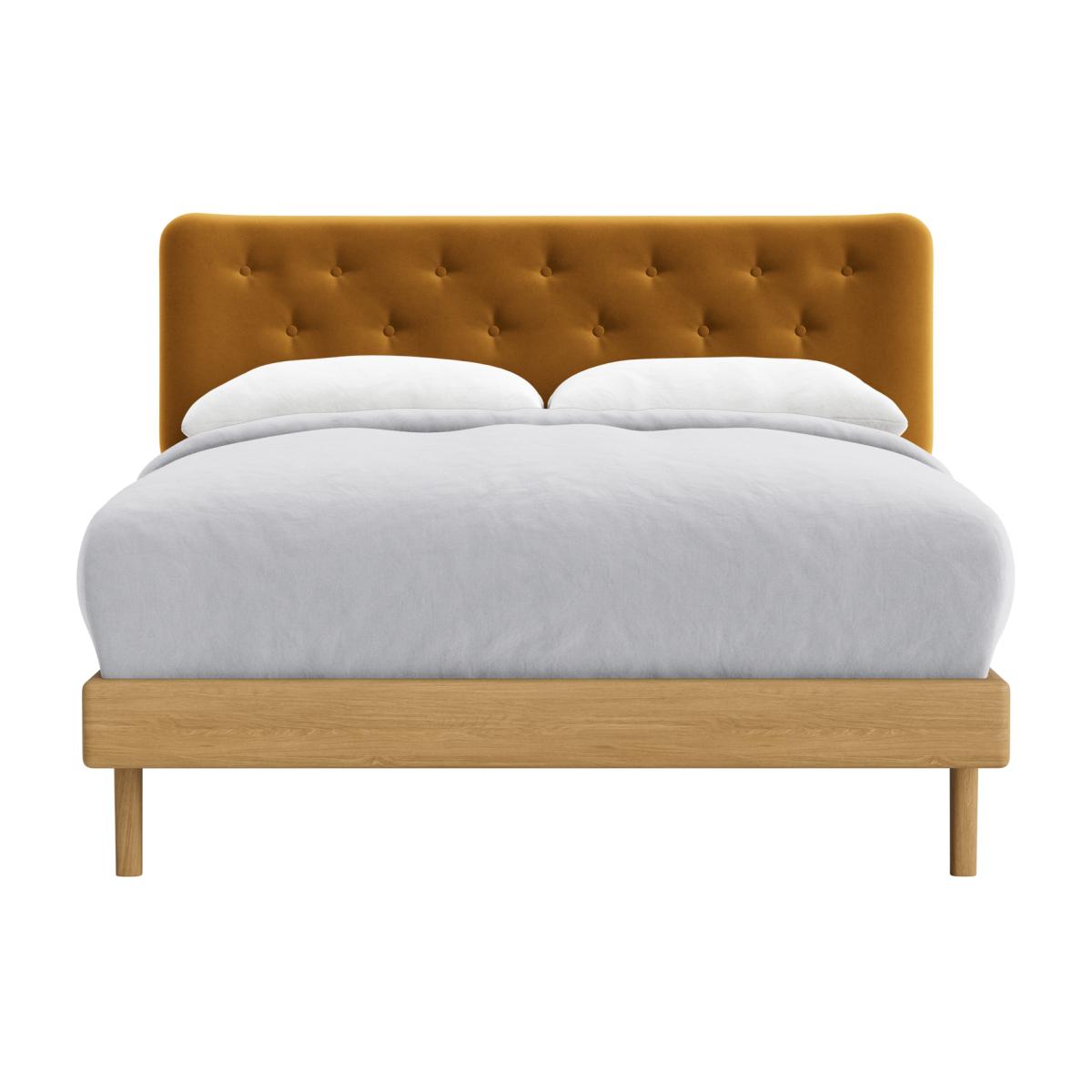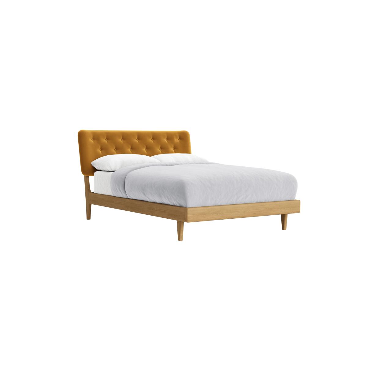 Double Dr Slow Bed in Light Oak in Butterscotch Clever Velvet