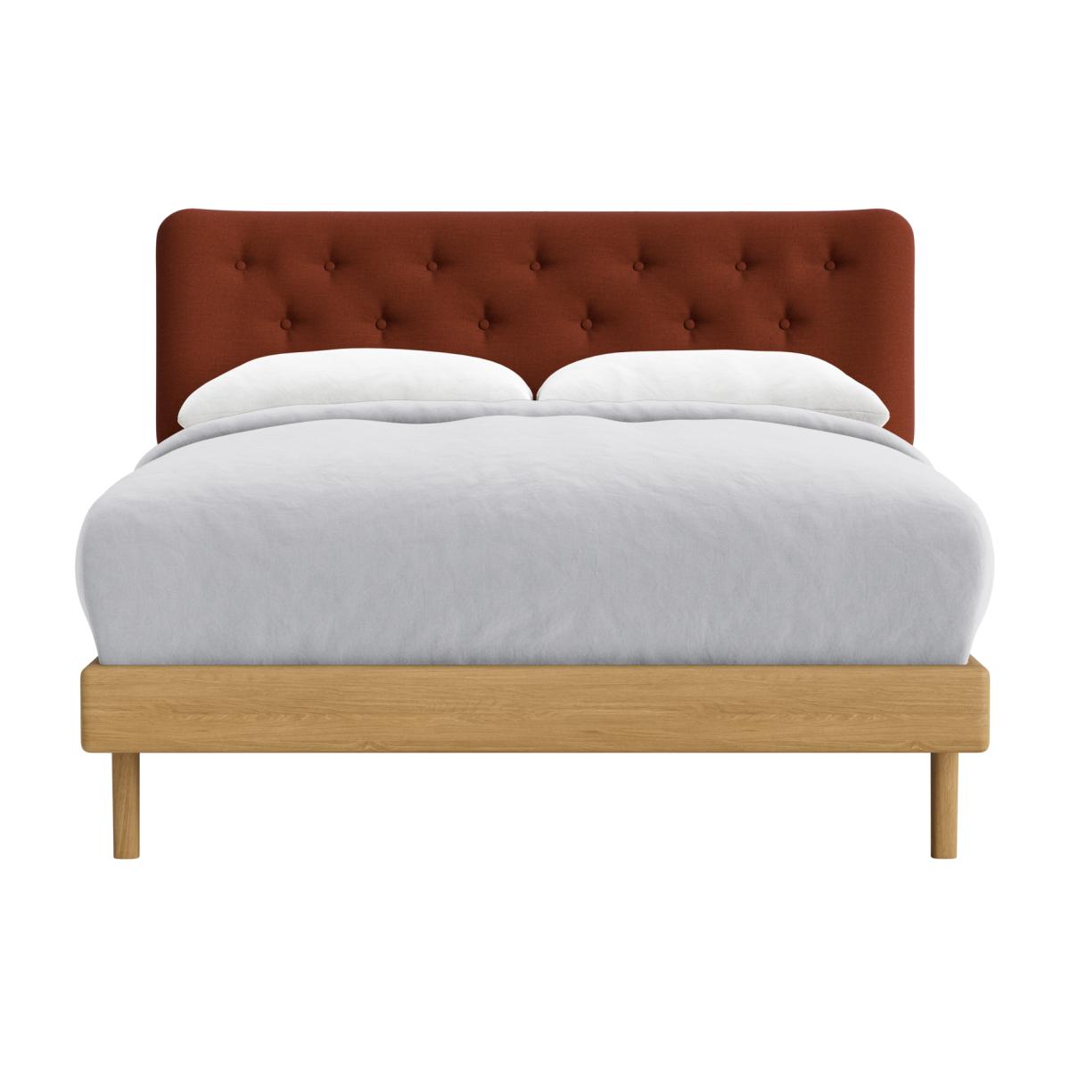 Double Dr Slow Bed in Light Oak in Quince Jam Clever Linen