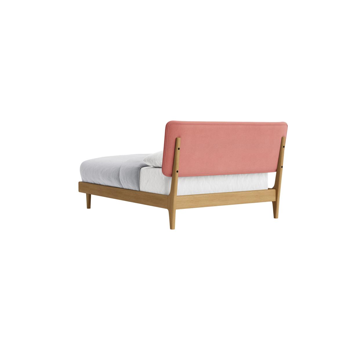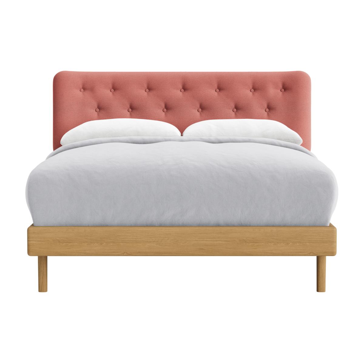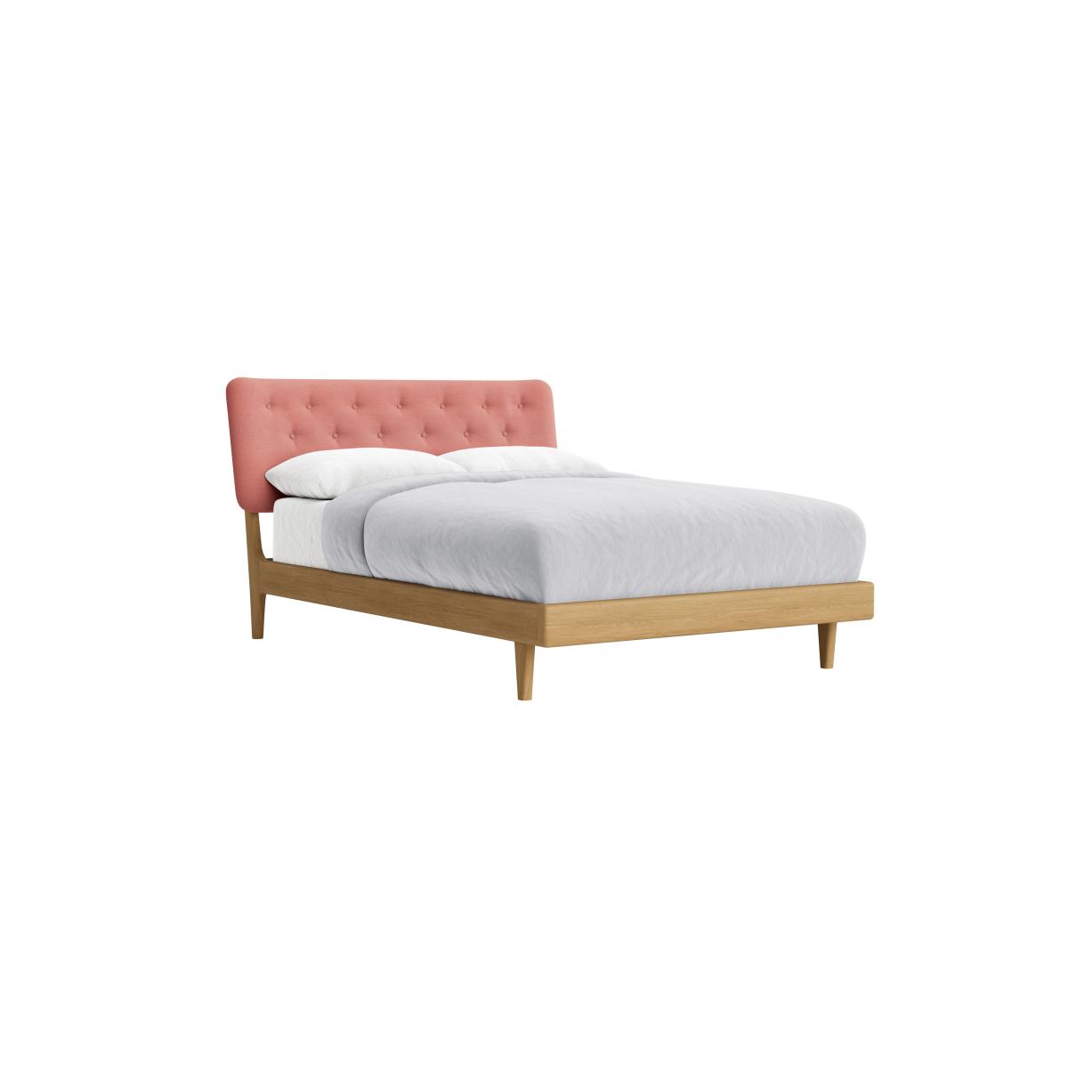 Double Dr Slow Bed in Light Oak in Rhubarb Fool Clever Twill