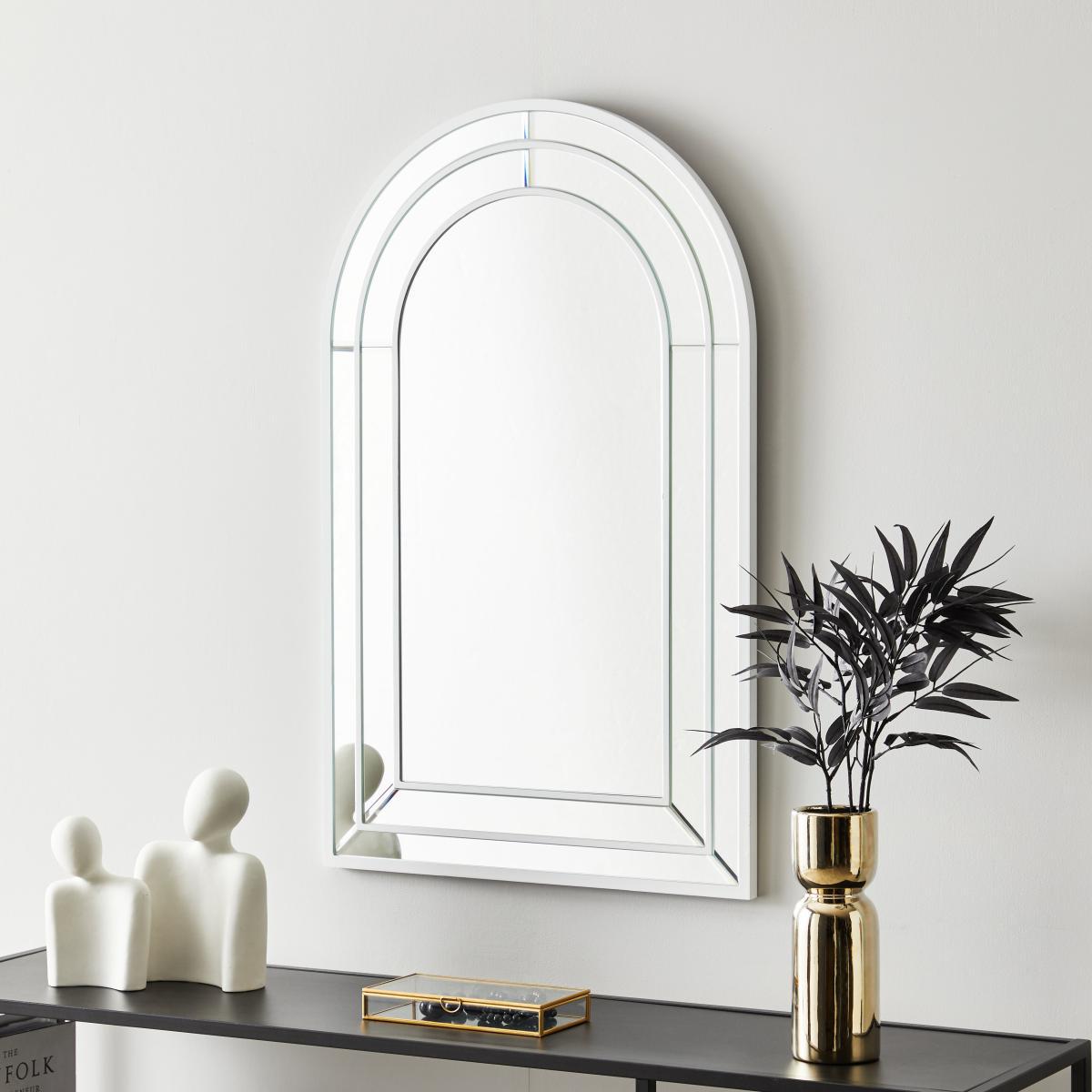 Double Edge Frame Arch Large Mirror 80x50cm White