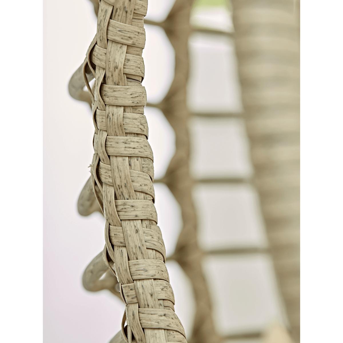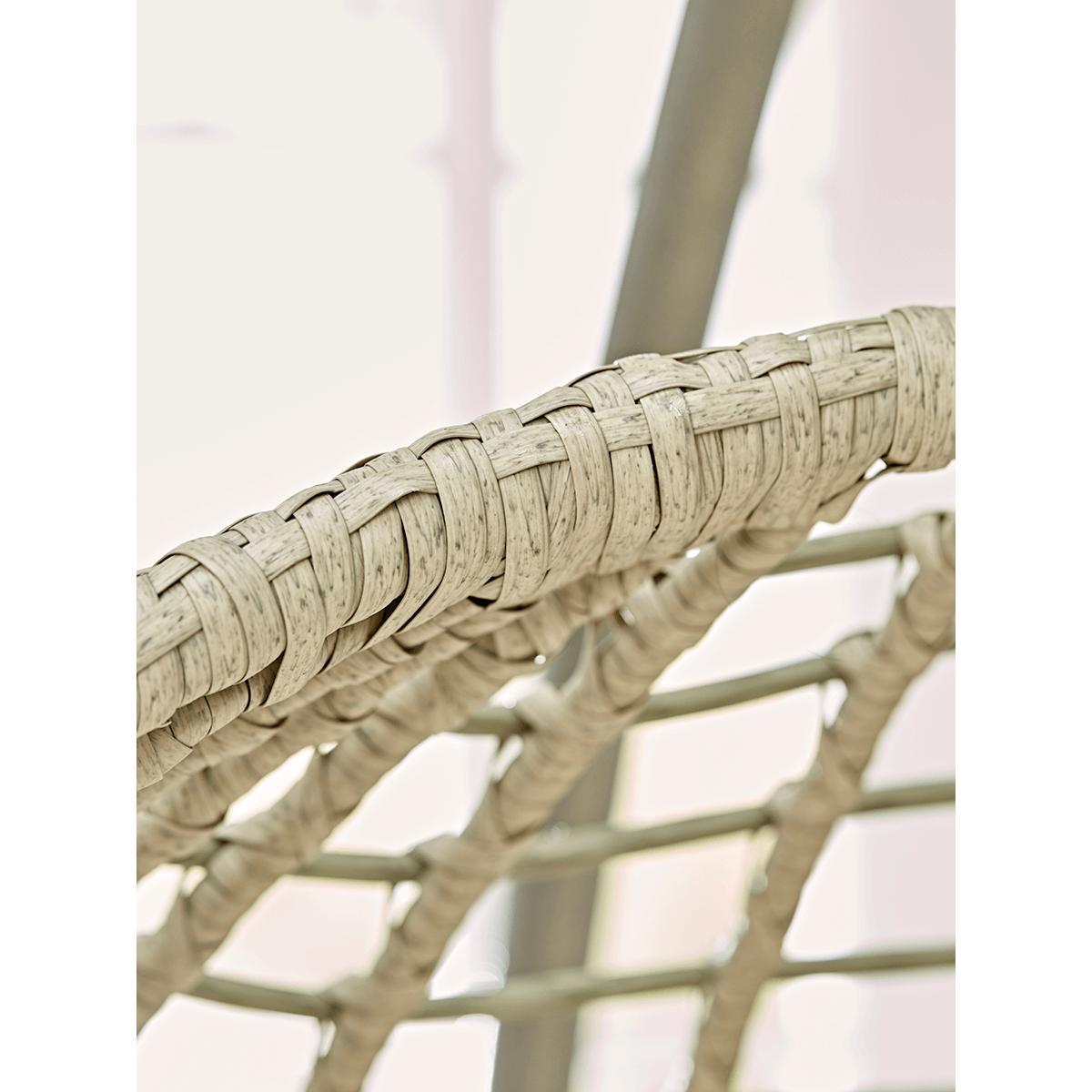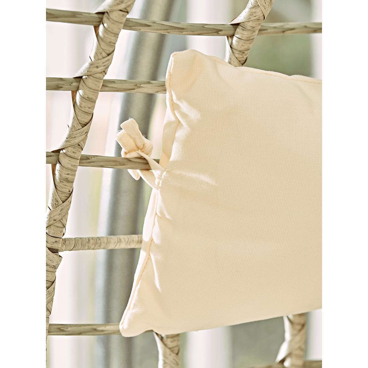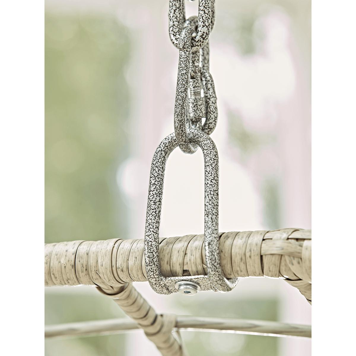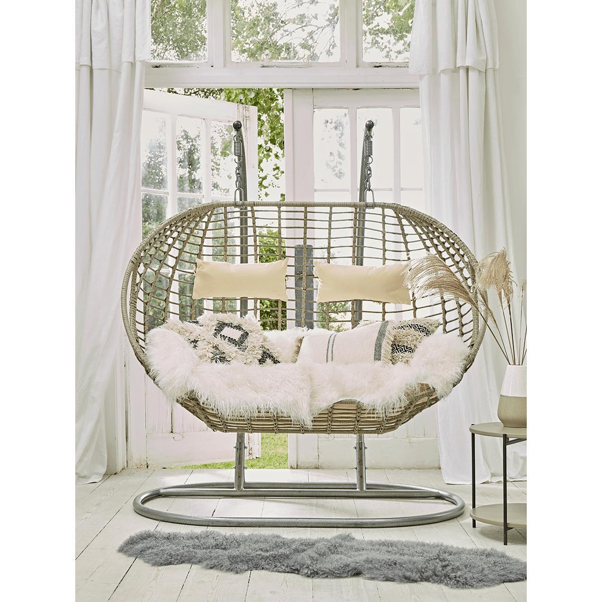Inspired by our bestselling. Indoor Outdoor Hanging Chair. , this new, double sized version is perfect for sharing with a companion. Each chair features a sturdy grey metal frame and faux wicker chair, with a sumptuous, soft cream seat cushion and two matching tie-on headrests.