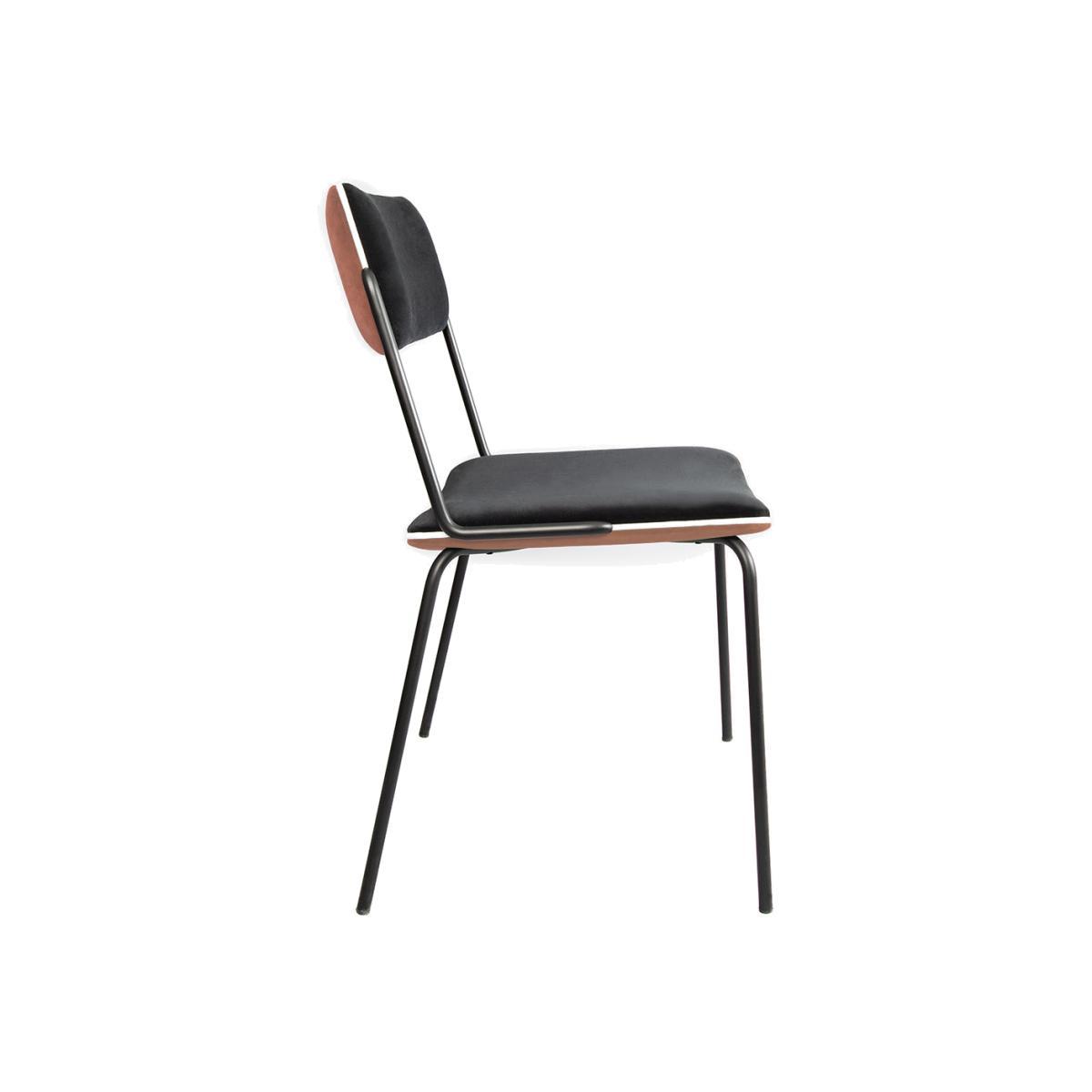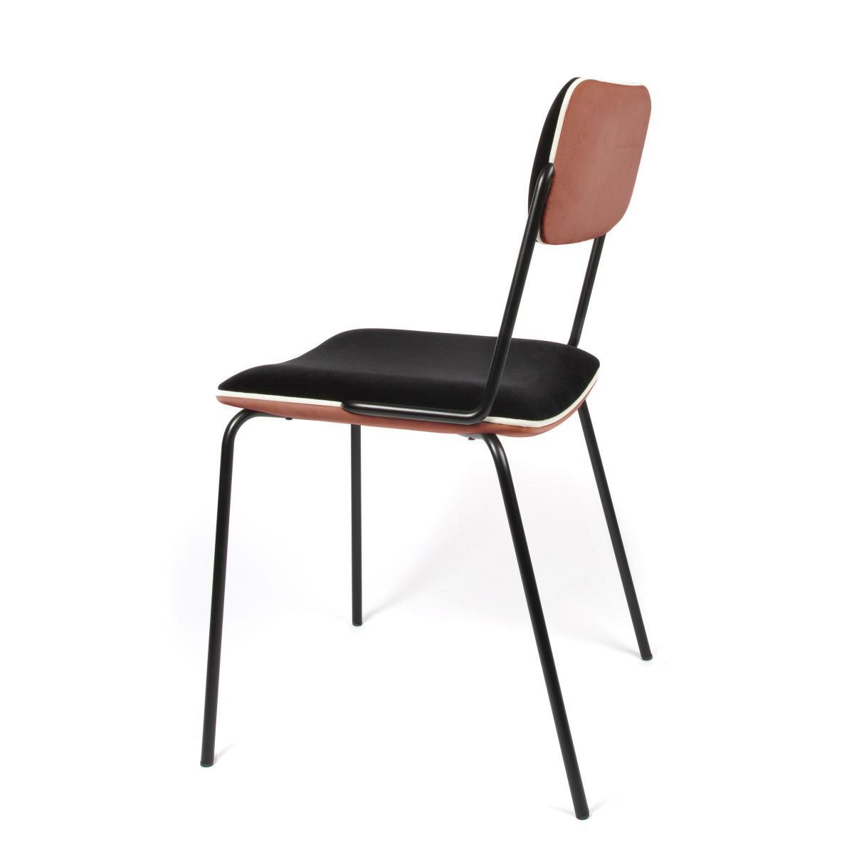 This couture velvet chair comes in beautiful combinations of vibrant colours: you’ll find the iconic tones of the Maison Sarah Lavoine brand. Inspired by the world of fashion, the Double Jeu chair boasts glamorous, ultra-neat finishes. Its formal 1930s-inspired austerity leads to the expressiveness of its details: the quality of the velvet fabric, the white lines that structure the silhouette, the contrast of metal and padding, the clean design of the tubular structure. This silky, soft and warm velvet is refined and luxurious in style. The intense colour combinations give the Double Jeu chair a strong, feminine look. The tubular structure is made of lacquered steel. The upholstered seat and back provide excellent sitting comfort. The Double Jeu chair adds a friendly note to our interiors. It’s perfect for creating a sophisticated, cosy corner in any room in the house: around the living room table, in front of a desk, in a bedroom, an entrance.