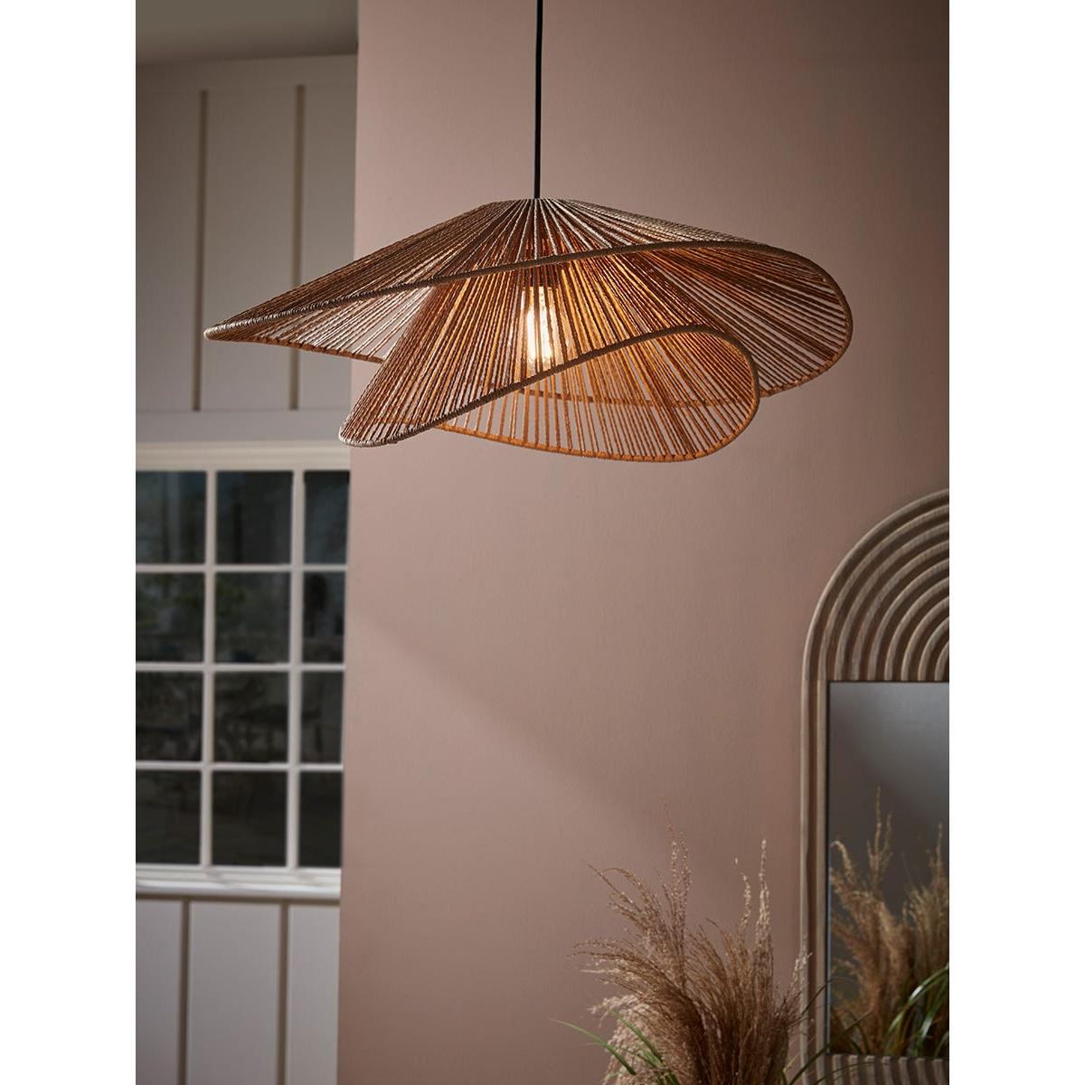 I love this pendant for its natural, sculptural appeal - it adds warmth and texture without overwhelming a space. It works particularly well in boho, Scandi, or coastal interiors, where organic materials and neutral tones are key. When styling, consider hanging it over a dining table or in a living area with neutral furniture to highlight its woven design. Practical tips include choosing a bulb with a warm colour temperature to enhance the cosy feel, and ensuring the height is adjustable to create a balanced look - especially in rooms with high ceilings. It's a versatile piece that can serve as both functional lighting and a statement decorative feature.