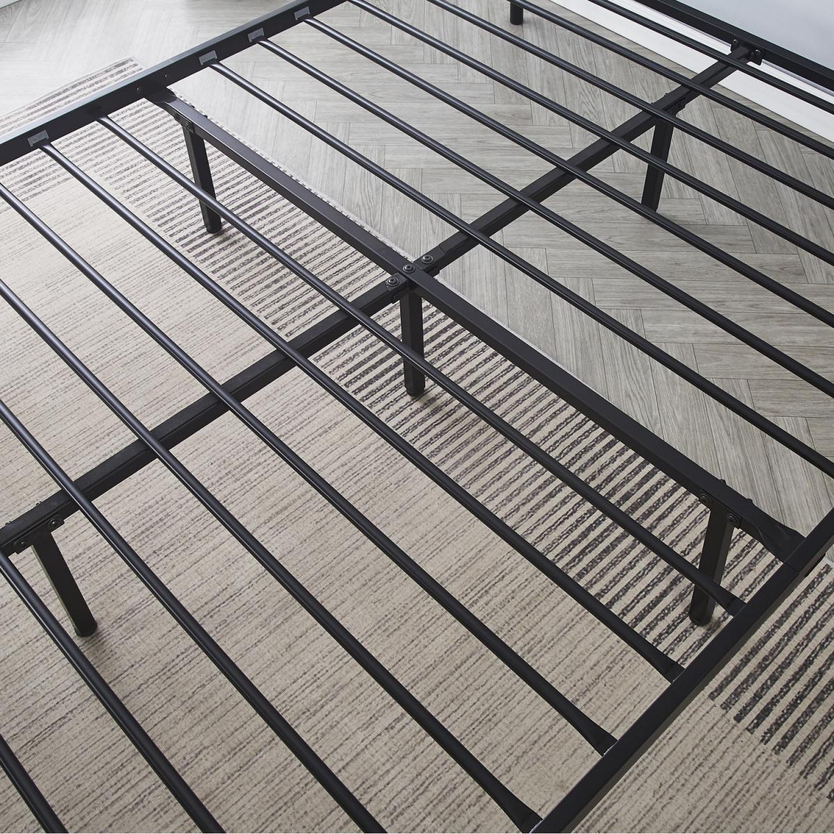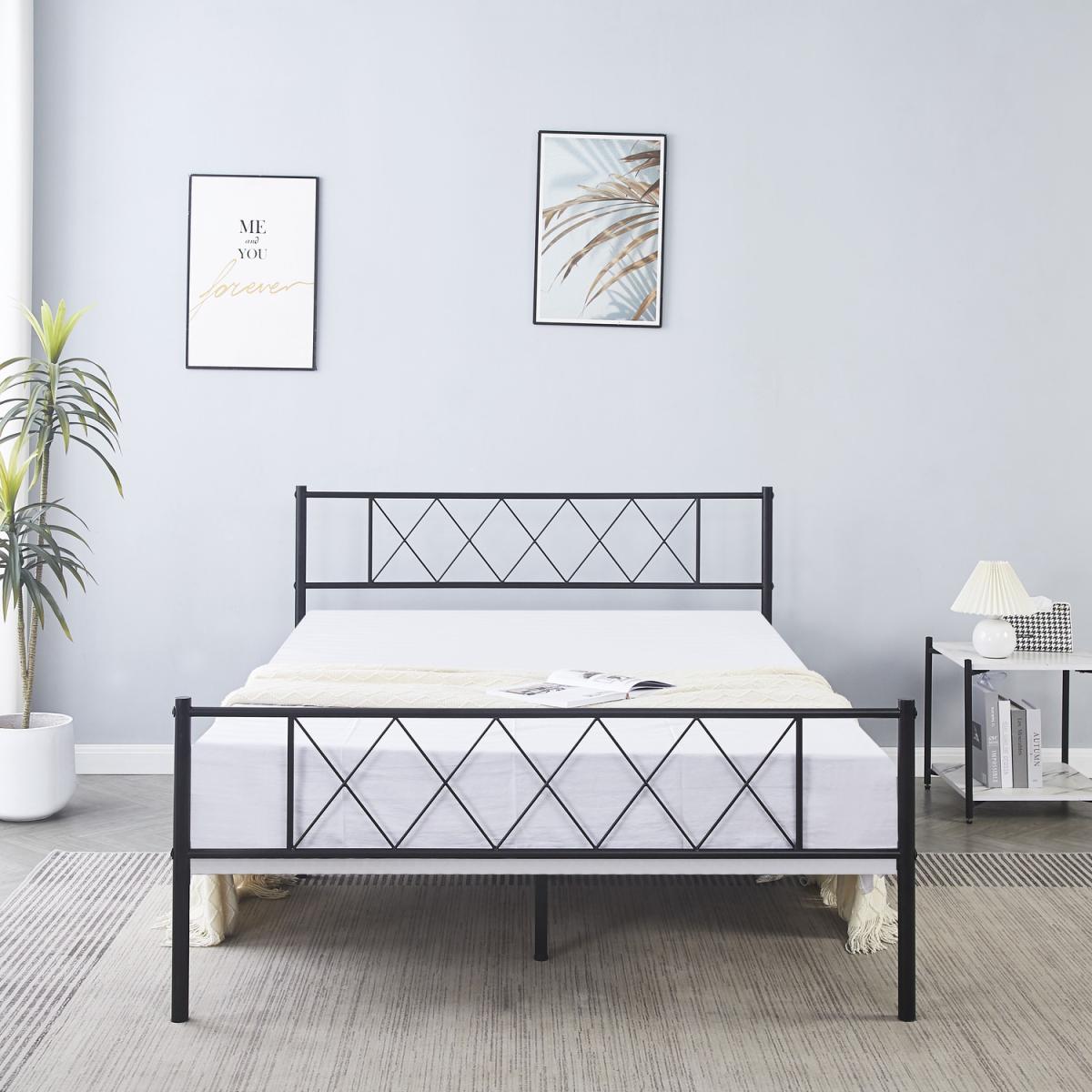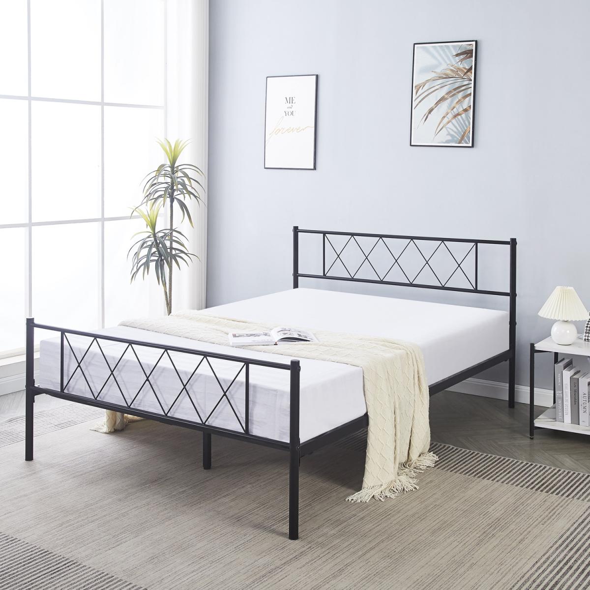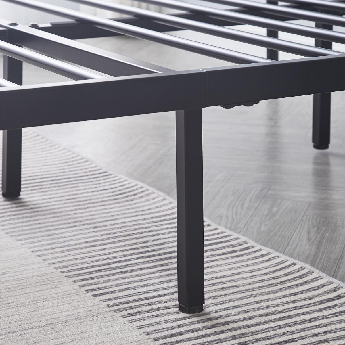 With simple lines and an open design, this 4ft 6inch double bed frame with a slatted headboard will be a great addition to your home. The metal tube base combined with a black finish creates a strong industrial vibe that is suitable for all traditional and contemporary decor homes. Crafted of metal slats, side rails and 9 solid legs, our double bed base is capable of holding up to 272 kg. The premium frame is powder coated for scratch resistance. Cleaning is a breeze, wipe clean with a soft, dry cloth. The 30cm of clearance under the bed well enlarges your bedroom storage space. It will be a good addition to bedrooms, guest rooms, spare rooms, dormitories, flats and more.