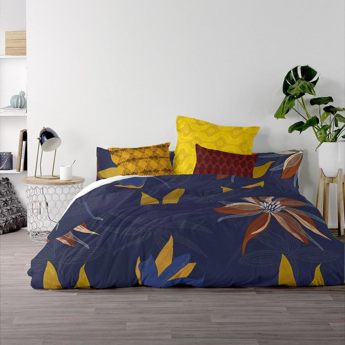 Muyuni is a bold combination of colour and pattern that looks great in any bedroom looking for a bright, vibrant look. This set includes a double duvet cover and matching pillowcases, which are decorated with a floral print that adds a natural vibe to the space. The combination of blue, yellow, and red is sure to catch the eye, making a stylish statement in the bedroom.