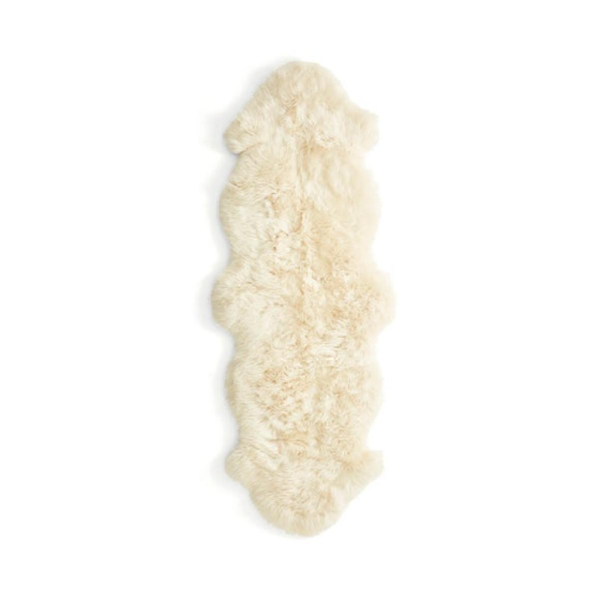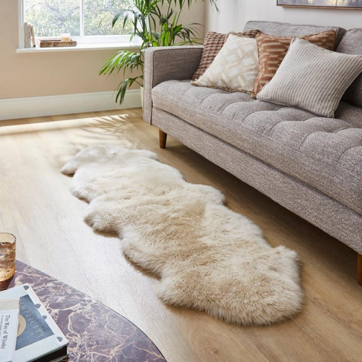 I love the double pelt sheepskin rug for adding texture and warmth to a space without overwhelming it. It works particularly well in cosy living rooms or bedrooms, especially layered over a neutral rug or tucked under a coffee table for a touch of comfort. The natural, fluffy look makes it versatile enough to complement Scandi, rustic, or contemporary interiors. Practical styling tips include draping it over a side chair or sofa for a relaxed vibe, or using it on a hardwood floor to soften the look. Since it's a faux, plush piece, it’s easy to maintain and adds a tactile element that invites you to sink your feet in.