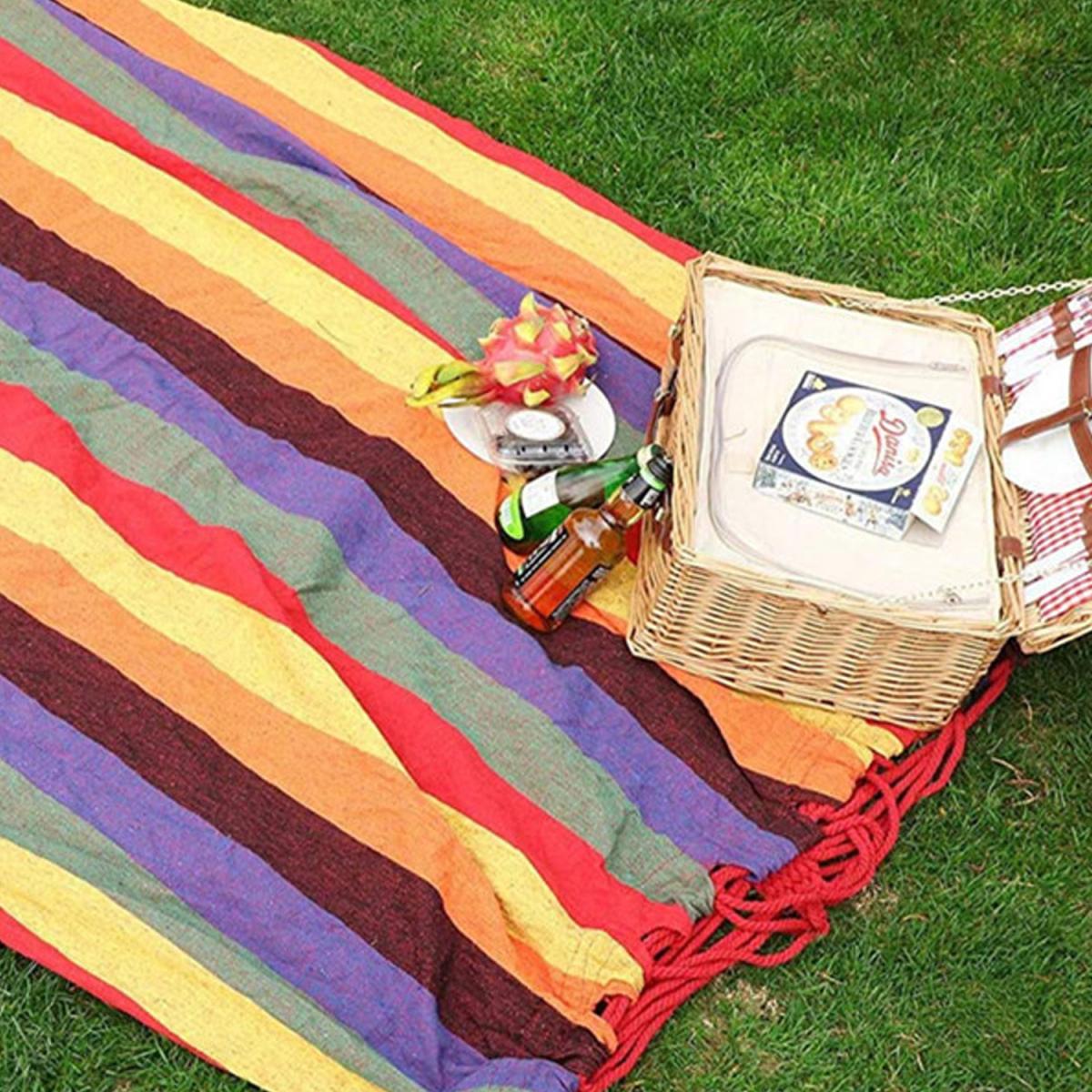 The double rainbow patterned hammock is a vibrant and playful addition to both indoor and outdoor spaces, perfect for bringing colour and relaxation into your home. I love how its multicoloured stripes can add a lively focal point in a neutral or minimal setup, or complement more eclectic and bohemian interiors. It works particularly well in sunrooms, garden pavilions, or even large bedrooms with enough ceiling height or wall space for hanging. When styling, consider pairing it with woven textures or natural wood furniture to enhance its relaxed vibe. Practical tips include hanging it at a comfortable height for easy access, and adding cushions inside to increase comfort. Overall, this hammock is a wonderfully versatile piece that encourages leisure and playful aesthetics.