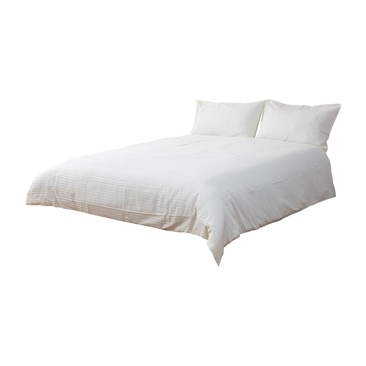 Sateen bedding is a great choice when you’re looking for a soft, luxurious feel, with our 100% cotton material and 210 thread count ensuring high-end comfort every night. This double set includes a double duvet cover and a pair of pillowcases, and is finished in ivory for a clean, fresh look across your bedroom. A stripe pattern adds subtle decoration to the set, offering an extra layer of design to the interior.