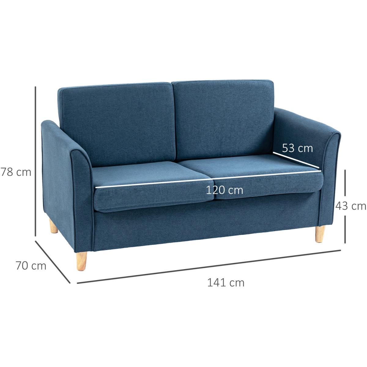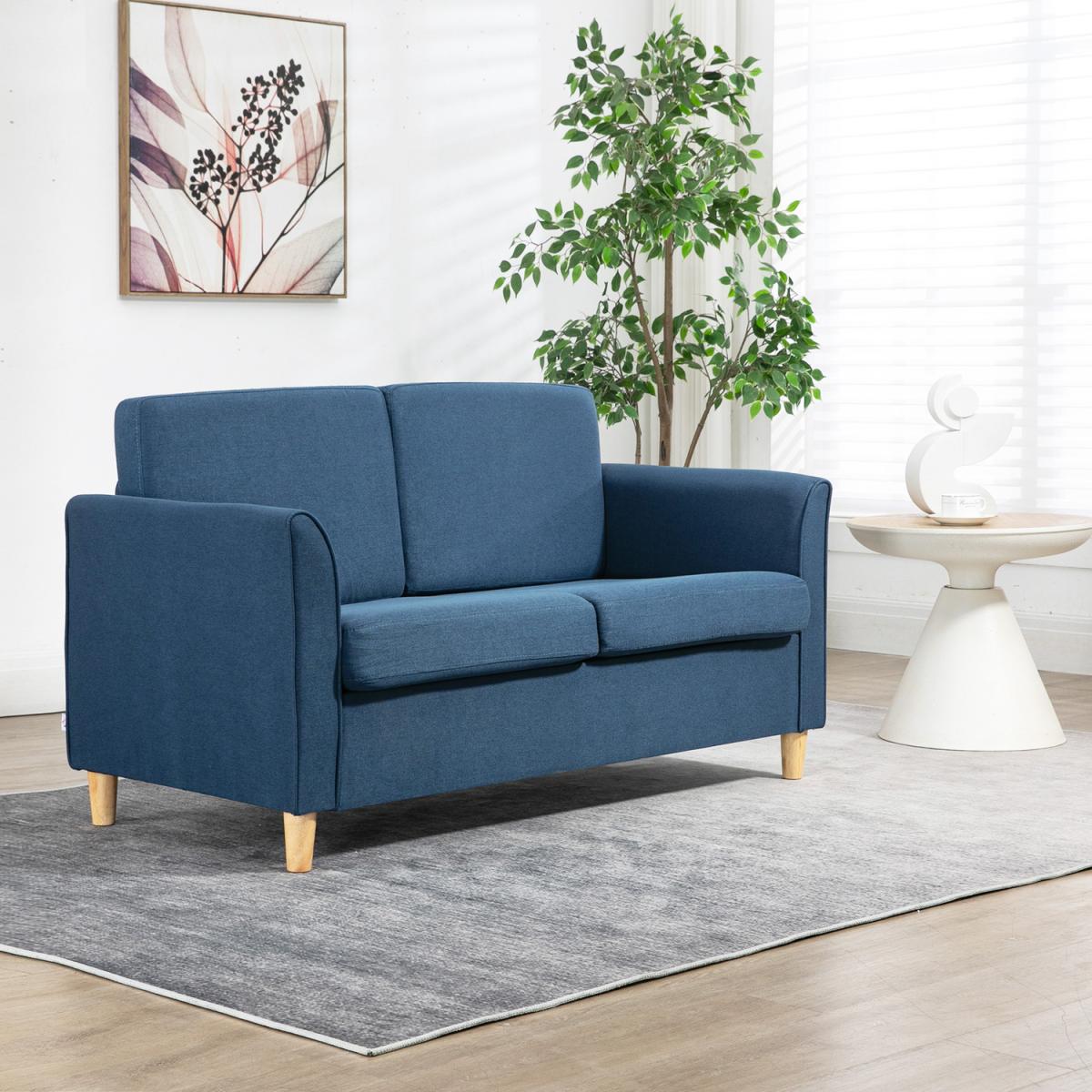 Double Seat Sofa Loveseat Couch 2 Seater Sofa with Legs - Blue