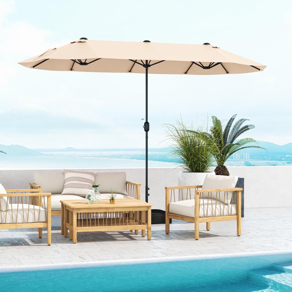 This double-sided patio parasol in beige is a versatile addition that works well in both contemporary and classic outdoor settings. I love how practical it is, providing shaded comfort from either side, making it ideal for communal or private outdoor spaces. It pairs excellently with neutral or natural palettes, and can also serve as a subtle complement to more colourful surroundings. For styling tips, consider placing it over a matching neutral outdoor dining set, and add some layered textiles like cushions or outdoor rugs to soften the space. Its understated tone makes it a flexible accessory - easy to integrate into various décor styles without overpowering the overall look.