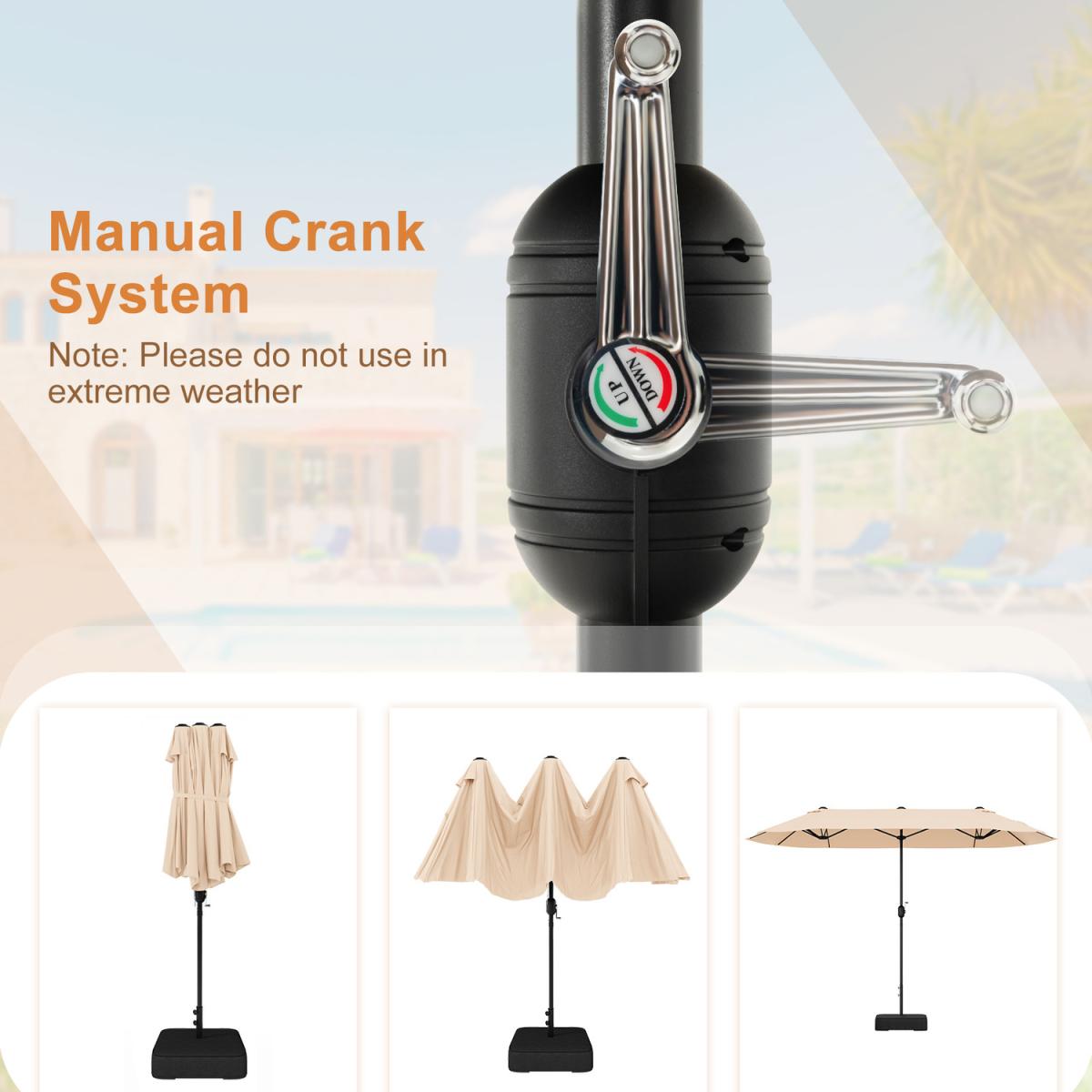 With impressive dimensions of 4m x 2m, the patio umbrella provides an enlarged shading space to accommodate your patio furniture. Meanwhile, the durable & UV-protective material will shield you from harmful rays and light rains. The stable heavy-duty frame ensure maximum stability even in windy conditions. For added stability, we provide an included fillable weighted stand. And the large rectangular patio umbrella is equipped with a safety lock mechanism that prevents accidental folding.
