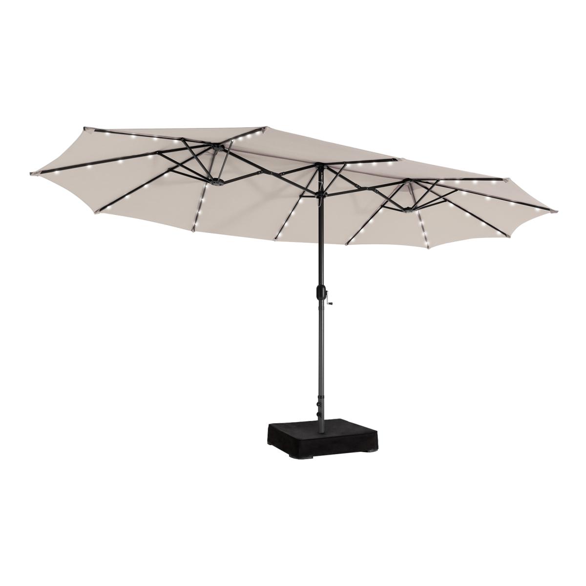 Double-Sided Patio Umbrella with Solar Lights - Beige