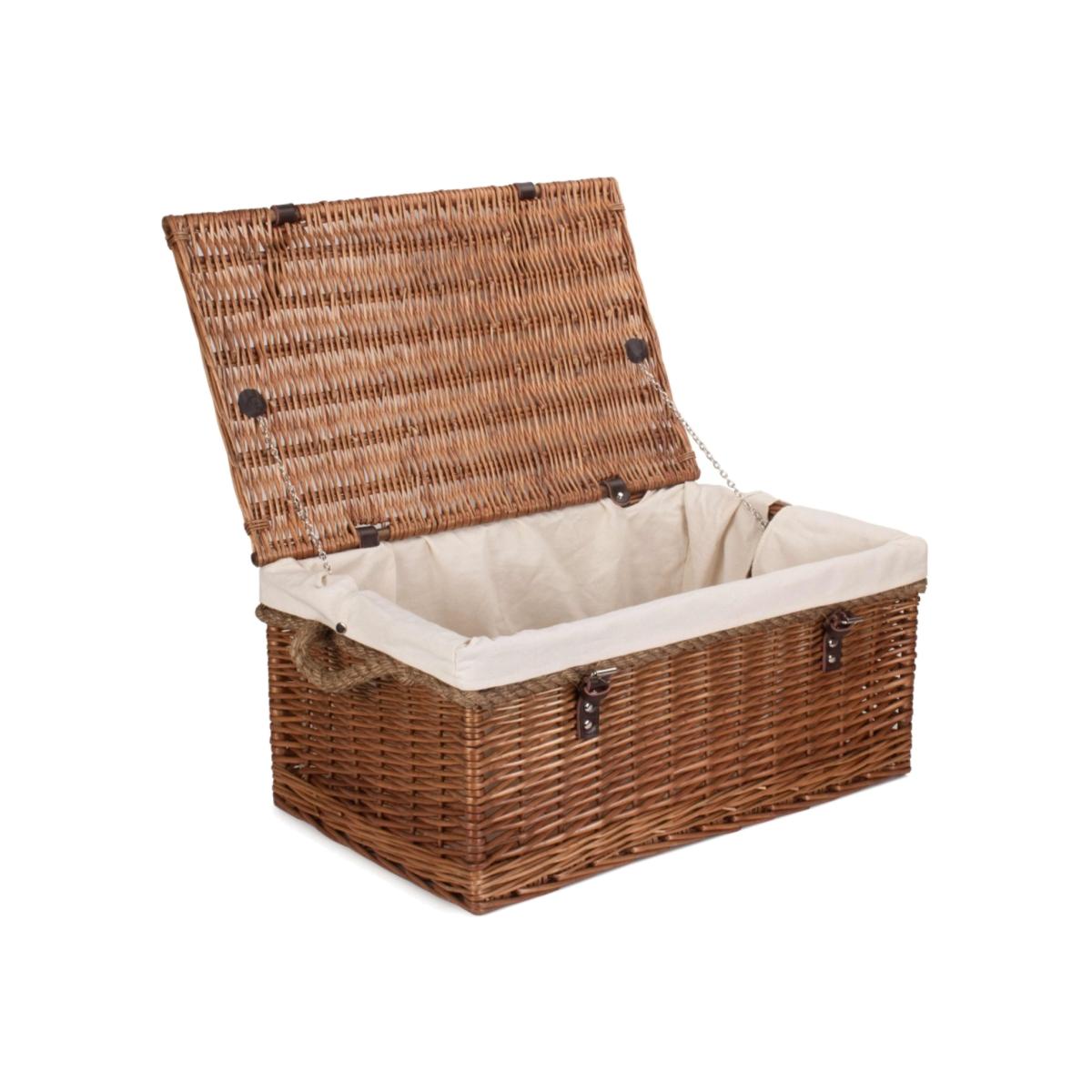 Double Steamed Rope Handled Wicker Trunk - Brown / White Cotton Lining