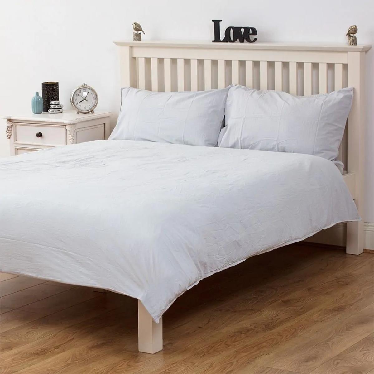 For a simple modern tone in your bedroom, our grey stonewashed bedding set may be the perfect choice, giving a light, airy, and on-trend look to any bedroom space. The set includes a double duvet cover and pair of pillowcases to match, so you’ll have no problem creating a consistent theme across your bedroom. Our 100% cotton material has a 155 thread count, so you can be assured that you’ve got a comfortable feel as you climb into bed at night, helping you to get a great night’s sleep!.