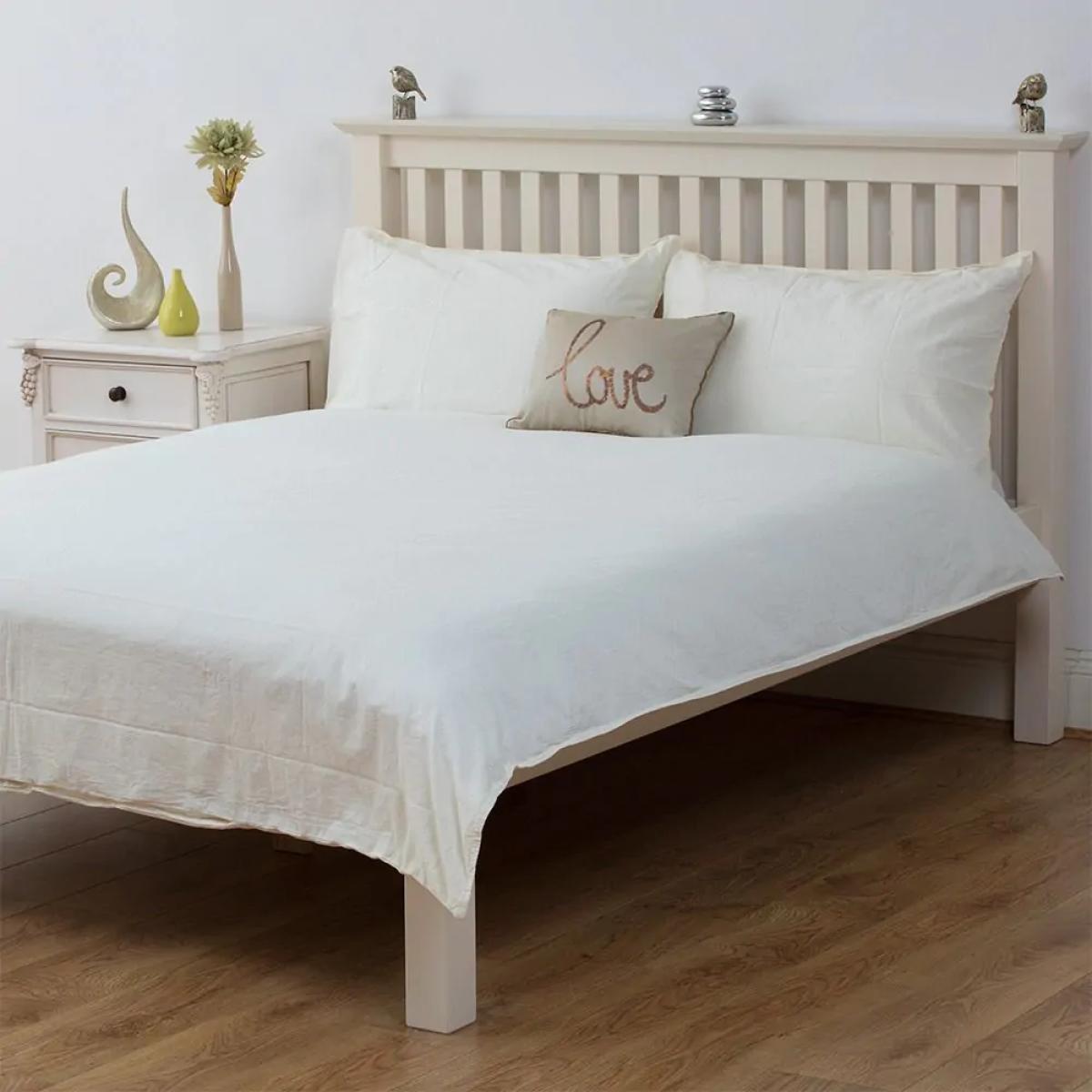 For a simple, bright feel in your bedroom décor, this stonewashed white bedding set is a fantastic choice, giving a clean look to the space that helps you to create a calmer, more serene vibe for the space. The double set has a 155 thread count that gives a soft, comfortable feel, and includes a duvet cover and 2 pillowcases so you can give a consistent look to the bed. This simple style looks great in any modern bedroom, giving a fresh tone to the interior.