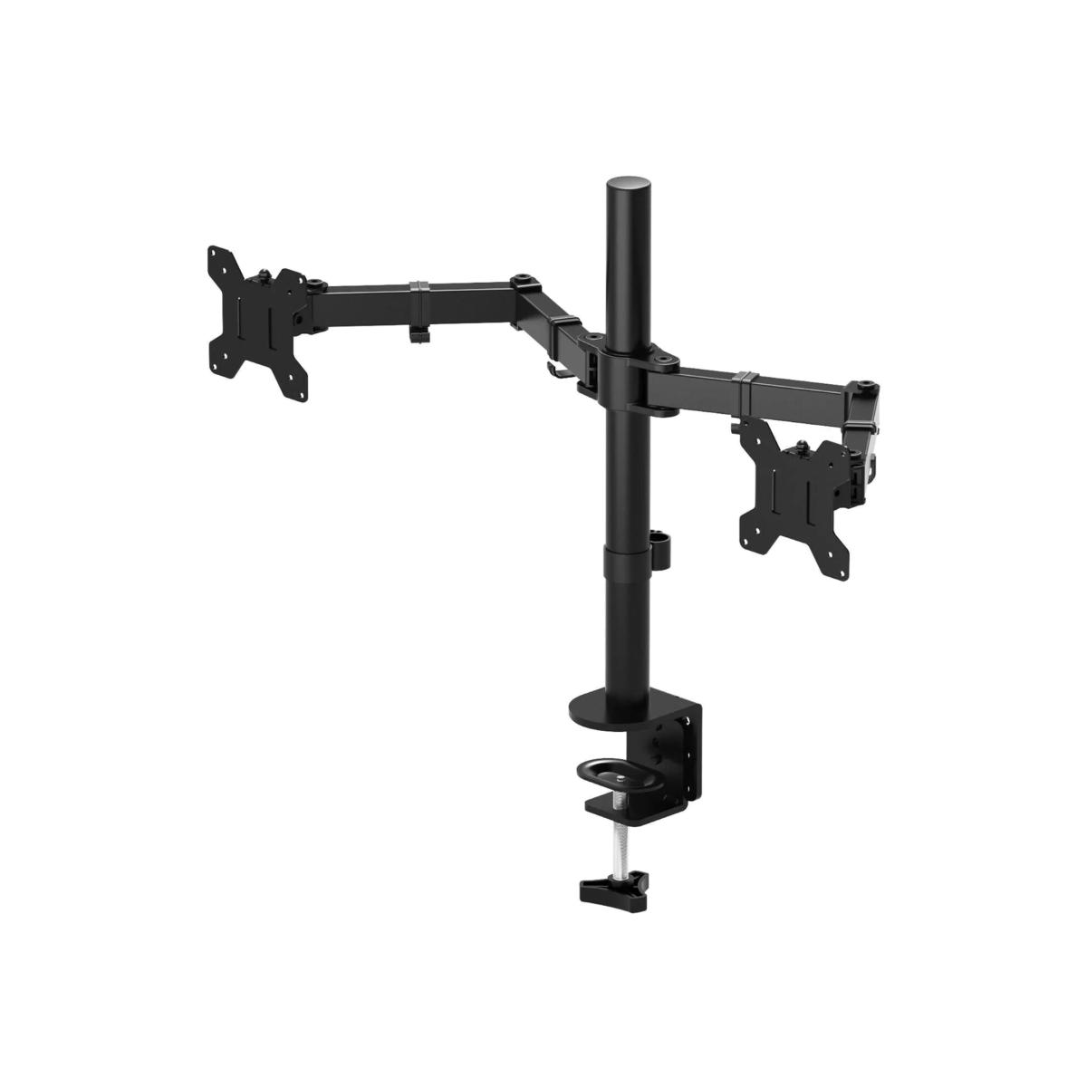 Gr8 Home Adjustable Black Metal LCD LED TV Computer Monitor PC Stand Holder Bracket Clamp Double Twin Arm Desk Mount 13"-27" Screen Home Office. The high grade material ensures a strong and stable connection with your monitor screens. The elegant engineering keeps your work space looking modern and sleek. Double efficiency and productivity to make working or relaxing that much more comfortable. Open up available desk space can help to provide a new range of adaptable positions for your displays. Our double monitor arms are easily adjustable, allowing you to work in a more comfortable, ergonomically correct position to reduce neck and eye strain. The contemporary design will surely assimilate into nearly any environment, it is ideal for homes, dorms, schools, businesses, offices, IT networks, manufacturing plants, etc. Steel Monitor Holder MTS-02, Holder Height: 400mm, 2x 400mm L Arm, VESA (Up to):100X10. 0, Monitor SIZE: 13-27", WEIGHT CAPACITY: 9kgs/18lbs / Arm, Tilt: +15-15, Colour: Black