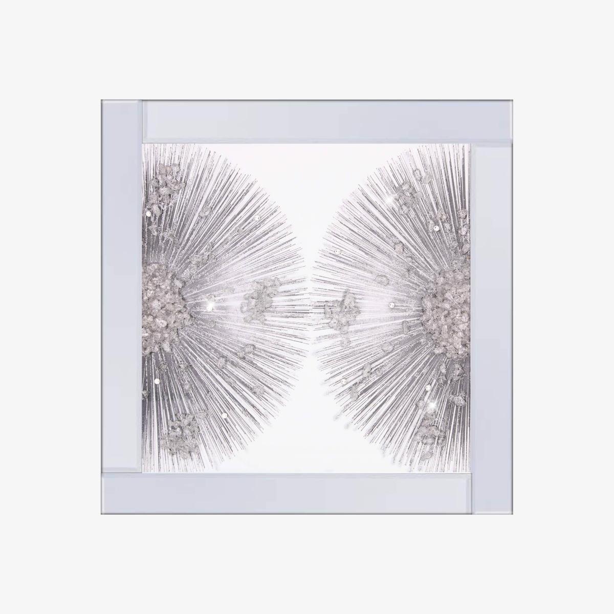 Contemporary wall art boasting a diamante finish. A glamorous addition to your wall space, this picture is part of the Wish range from Pagazzi Lighting. Flower in design, this silver and white artwork boasts delicate glass decoration forming the centre of each flower. The 3D features protrude from the art, complementing the glitter and diamante detailing beautifully. An elegant mirrored frame completes the piece. It is perfectly suited to modern living rooms, hallways and bedrooms. Contemporary wall art boasting a diamante finish. A glamorous addition to your wall space, this picture is part of the Wish range from Pagazzi Lighting. Flower in design, this silver and white artwork boasts delicate glass decoration forming the centre of each flower. The 3D features protrude from the art, complementing the glitter and diamante detailing beautifully. An elegant mirrored frame completes the piece. It is perfectly suited to modern living rooms, hallways and bedrooms.