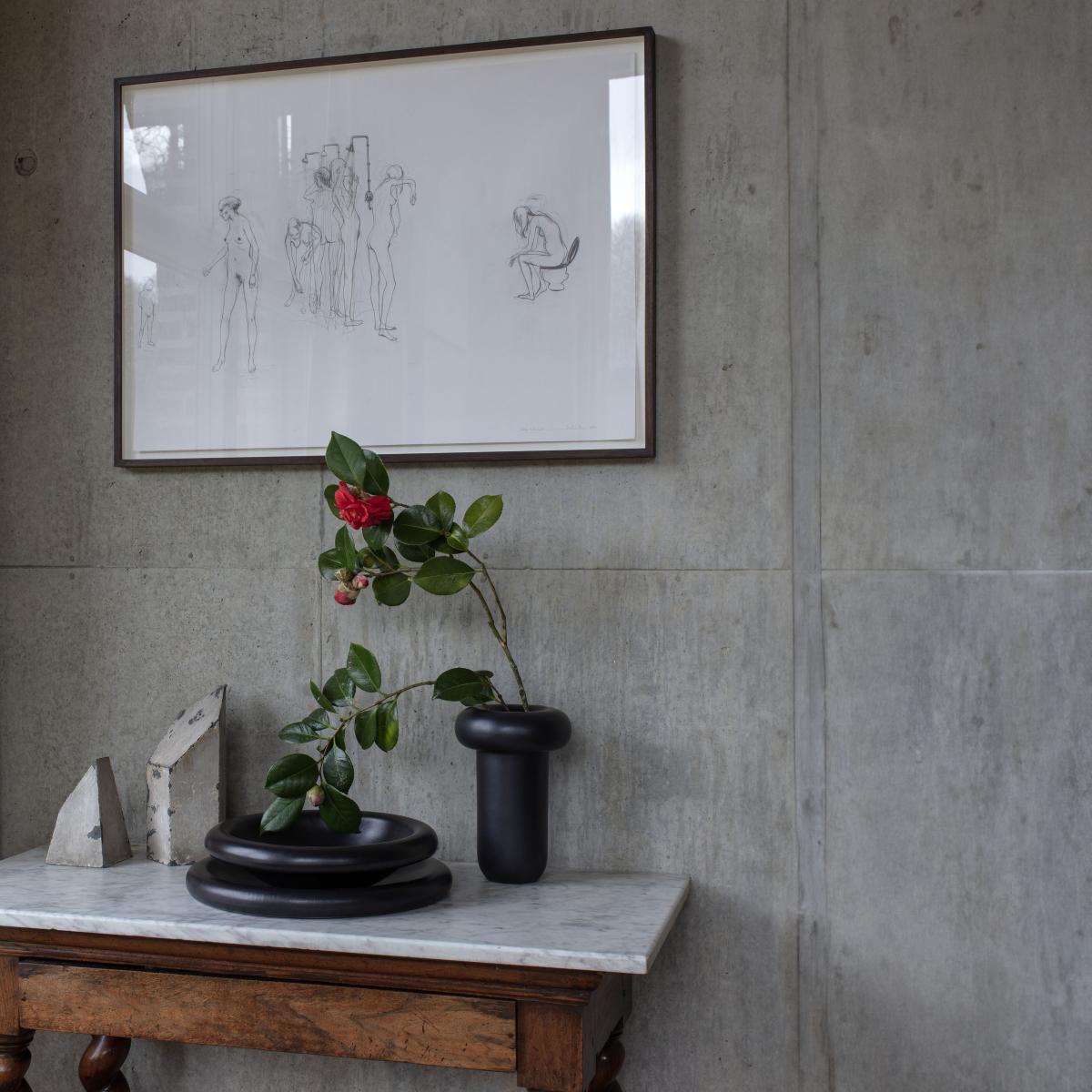 This black ceramic vase is a great choice for adding a sculptural element to both modern and minimalist interiors. Its clean, bold form makes it versatile-works equally well on a shelf, side table, or as a centrepiece. I love how its understated elegance can be paired with a simple bouquet or left as a standalone sculpture for a contemporary vibe. Practical tips include using it to anchor a monochrome colour palette or to introduce texture in a space with softer furnishings. Its size and shape make it ideal for single-stem arrangements or small floral displays, creating a striking focal point without overwhelming the surroundings.
