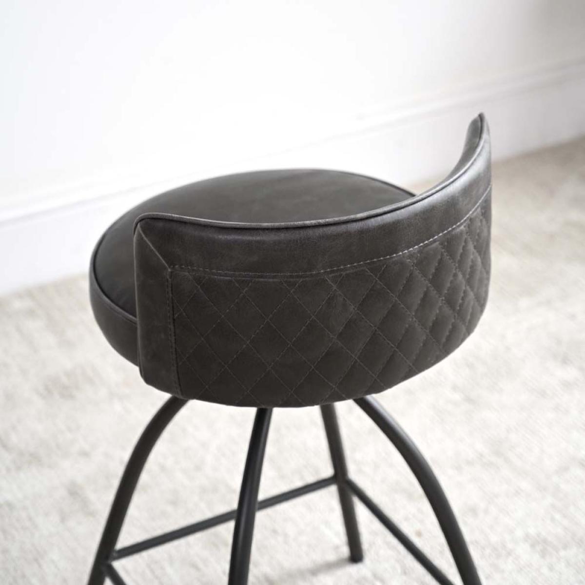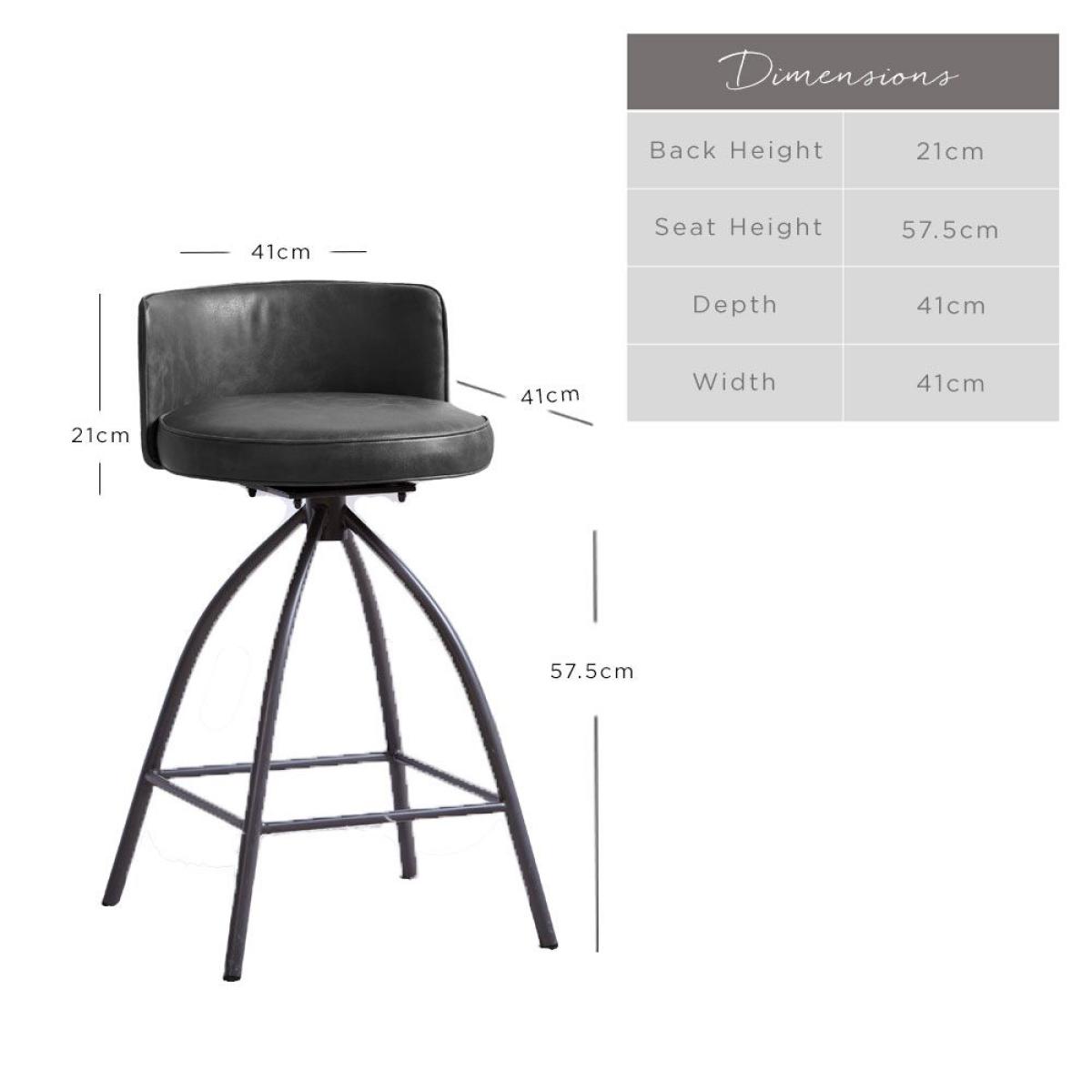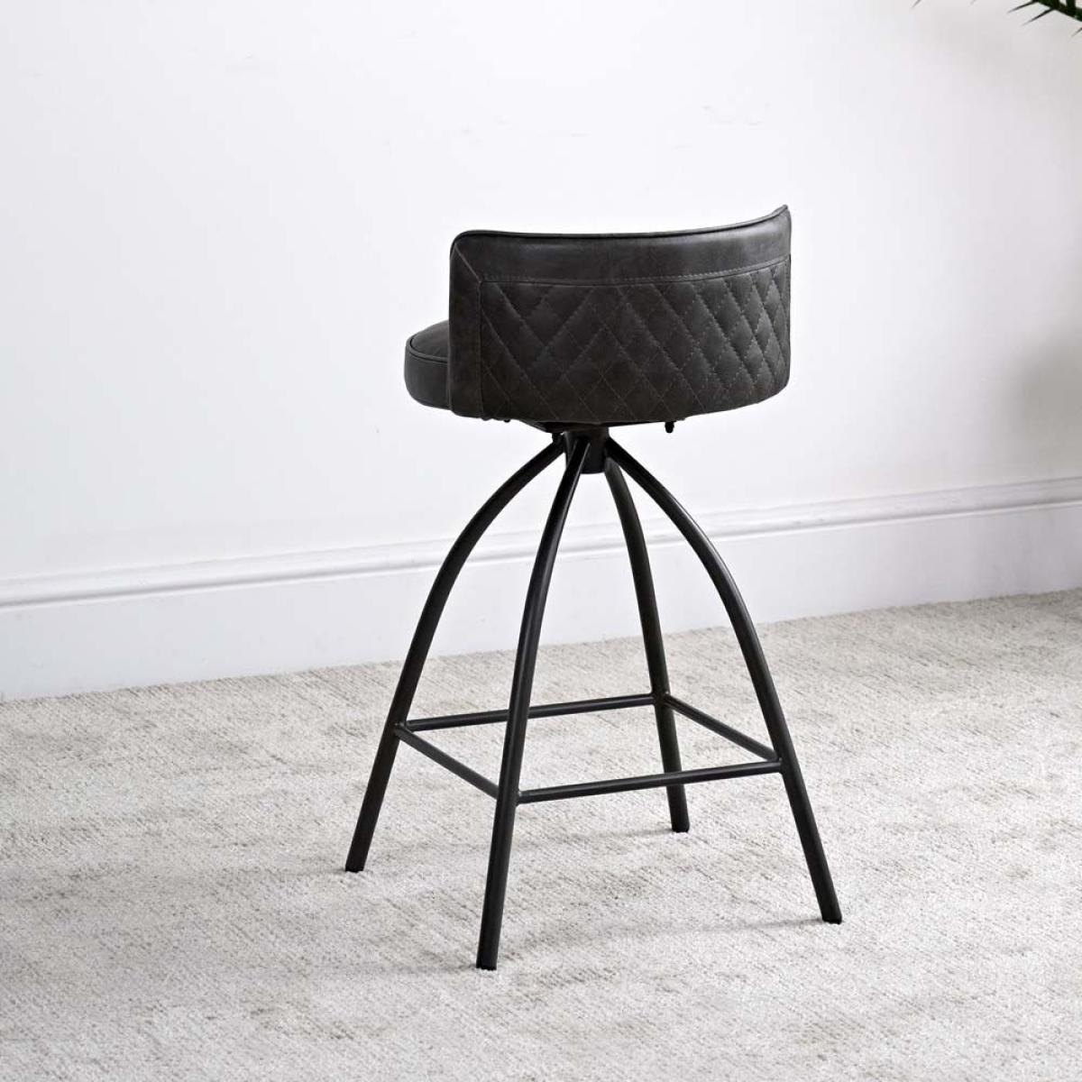This superb Douglas Bar Stool in a deep grey, comes in a gorgeous faux leather, which has a relaxed feel to it, and boasts curved metal legs, making it a great contemporary addition to your home. The stool includes a twist function to allow you to turn in your chair with ease.lt;p. Faux Leather Upholstery Twist function. Low back design. Dimensions: W41cm D41cm H78.5cm - Seat Height: 57.5cm. Simple Self-Assembly
