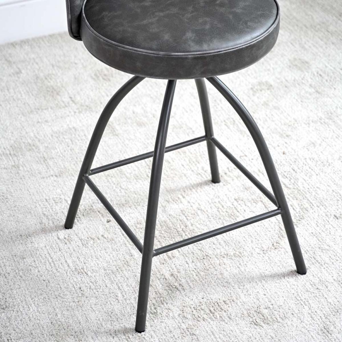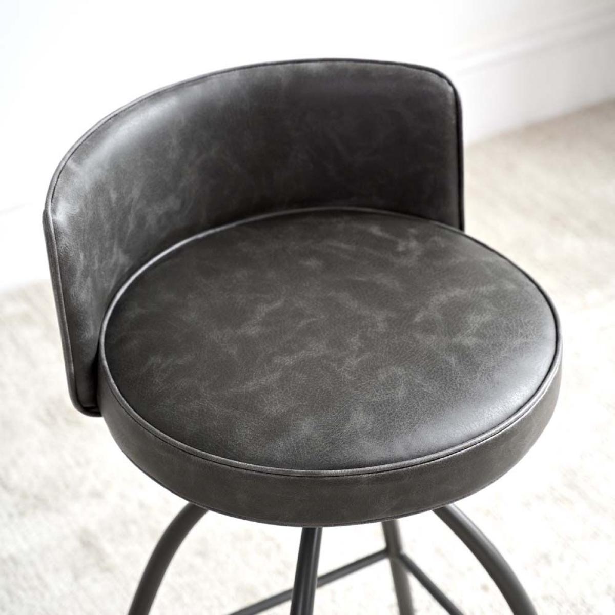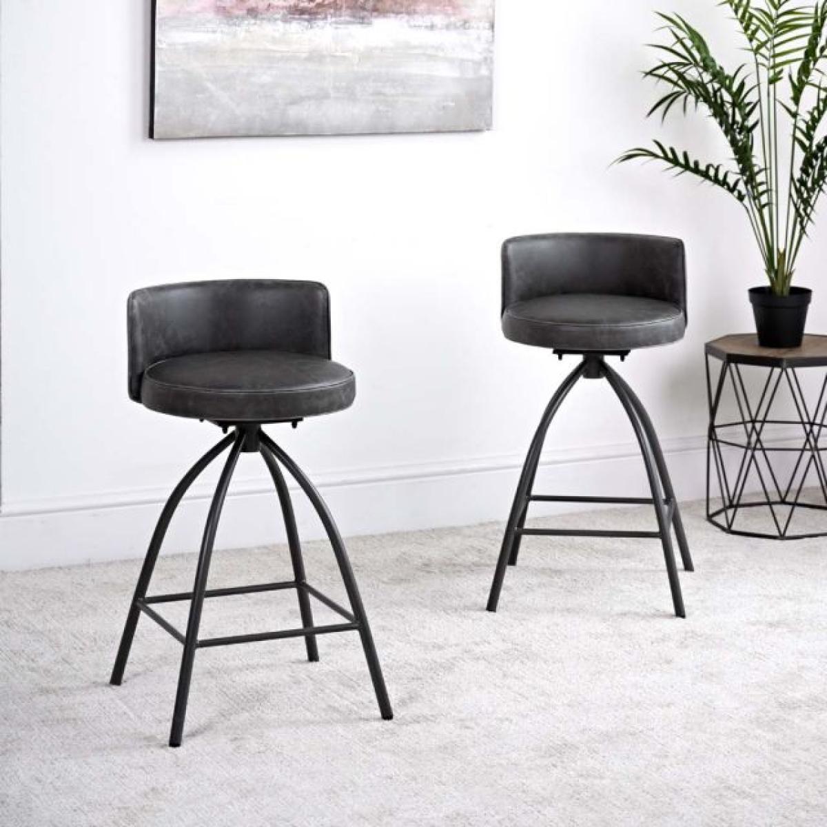 This superb Douglas Bar Stool in a deep grey, comes in a gorgeous faux leather, which has a relaxed feel to it, and boasts curved metal legs, making it a great contemporary addition to your home. The stool includes a twist function to allow you to turn in your chair with ease.lt;p. Faux Leather Upholstery Twist function. Low back design. Dimensions: W41cm D41cm H78.5cm - Seat Height: 57.5cm. Simple Self-Assembly