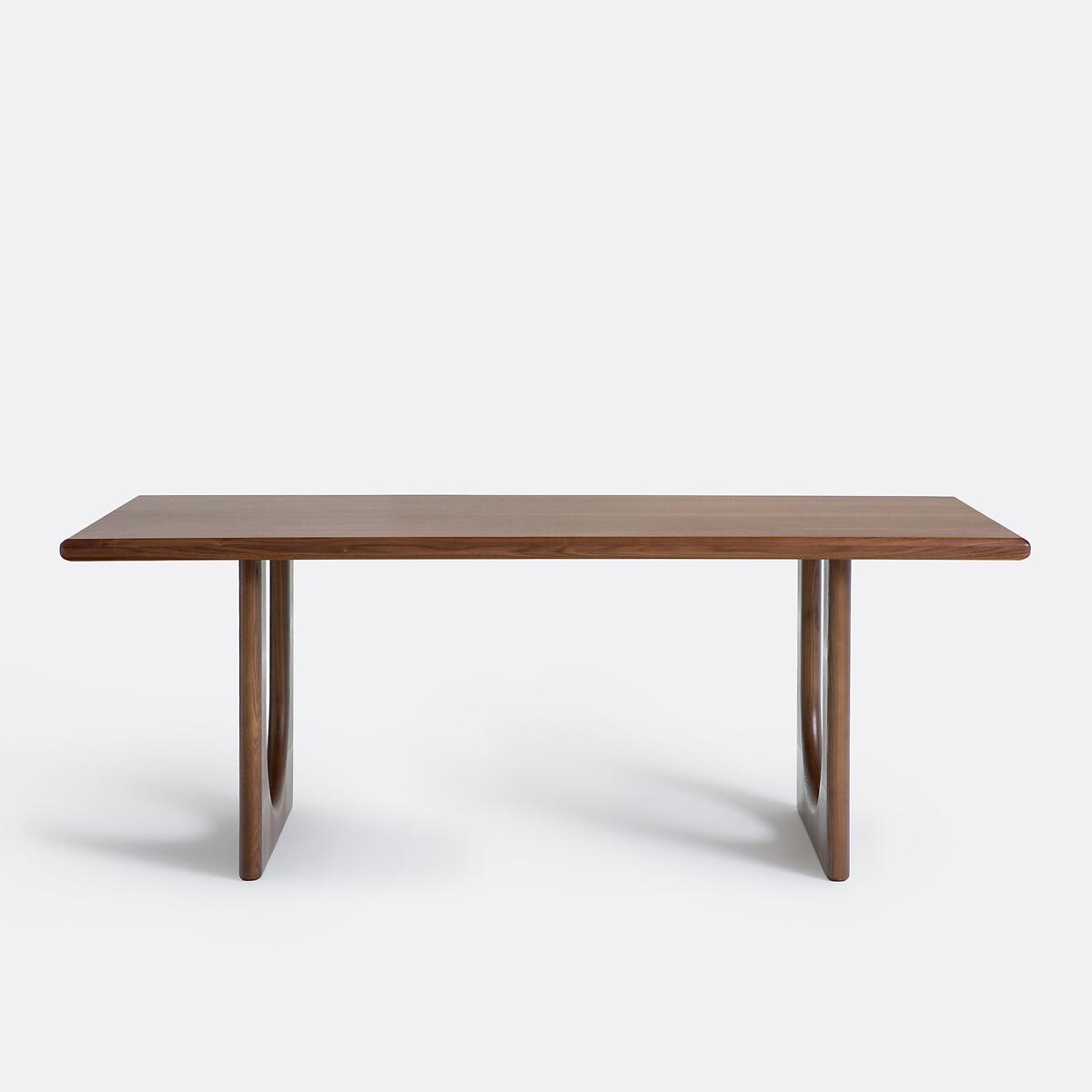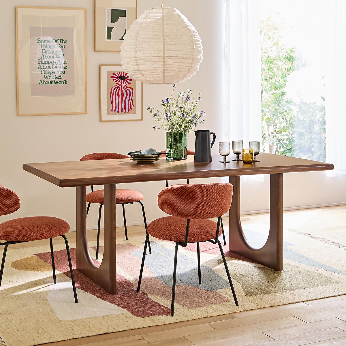 The Douve Table is part of the La Redoute Signatures Collection. A selection of exclusive creations, designed by our in-house design studio. Inspiring, easy to live with, on-trend... these products have become our customers' favourites. and no doubt yours!. An internal design by Adrien Edel : "By creating Douve, I wanted to reinterpret the traditional abbey table. It stands out for its contemporary style, its Nordic spirit and its sculptural design.. Walnut veneered MDF, thick table top with rounded edges and inverted arch base : all the beauty of carpentry. "Product Details • Solid walnut table surround, polyurethane-finished walnut veneered MDF top • Legs in walnut-stained ash with polyurethane finish • Top thickness 5cm • Seats 6-8 peopleDimensions. Overall • Width: 200cm • Height: 75cm • Depth: 90cm. Usable space • Length between legs: 120cmDelivery:. Assembly required. Available for home delivery. Note! Please check that all access points are large enough to accommodate your delivery (doors, stairs, lifts) • WOOD FROM SUSTAINABLY MANAGED FORESTS. FSC® certified wood comes from forests that are environmentally, socially and economically well managed. Dimensions and weight of parcel2 parcels • W87 x H24 x D85cm, 23kg • W208 x H9 x D100cm, 33.5kg