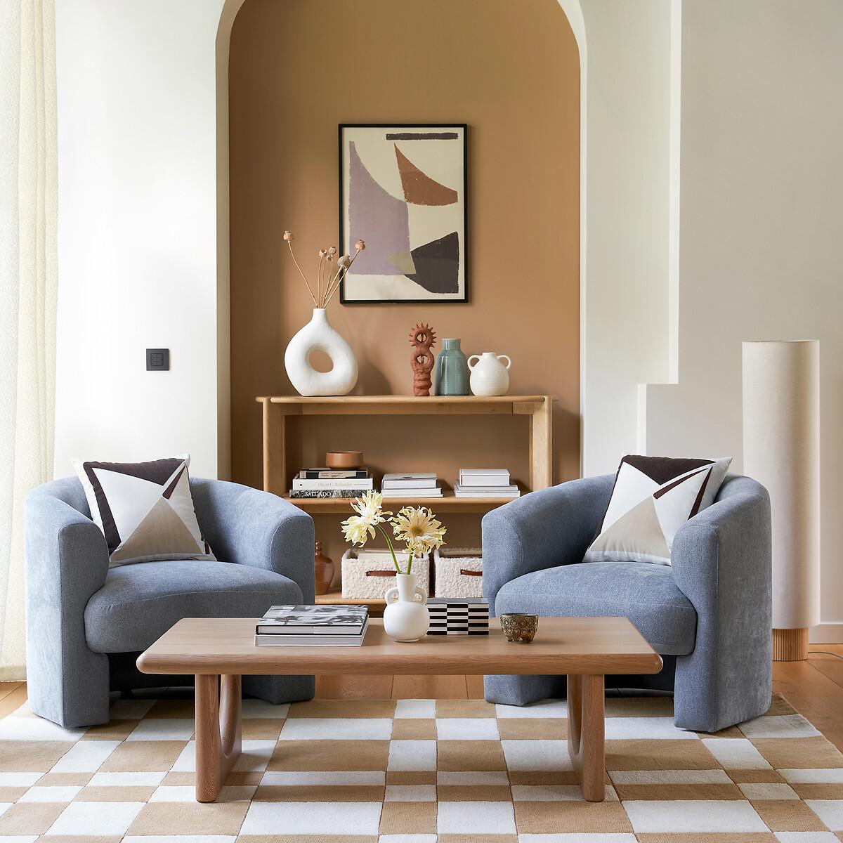 The Douve Coffee Table is part of the La Redoute Signatures Collection. A selection of exclusive creations, designed by our in-house design studio. Inspiring, easy to live with, trendy... these products have become our customers' favourites. and no doubt yours!. An internal design by Adrien Edel : "By creating Douve, I wanted to reinterpret the traditional abbey table. It stands out for its contemporary style and sculptural design. FSC® certified solid oak, thick top with rounded edges and inverted arch base: all the beauty of woodwork. "Product Details • Top in FSC® oak veneered particle board • FSC® solid oak base and top frame • Polyurethane varnish finishDimensions. Overall • Width: 120cm • Height: 35cm • Depth: 60cm. Usable dimensions • Length between legs: 84.4cm • Assembly required. • WOOD FROM SUSTAINABLY MANAGED FORESTS. FSC® certified wood comes from forests that are environmentally, socially and economically well managed. Dimensions and weight of parcel • 1 parcel • L130 x H21 x D70cm. 24kg
