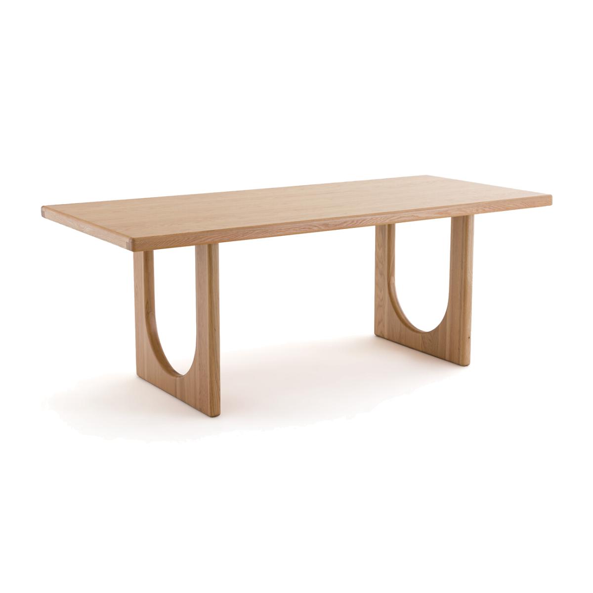 The Douve Table is part of the La Redoute Signatures Collection. A selection of exclusive creations, designed by our in-house design studio. Inspiring, easy to live with, trendy... these products have become our customers' favourites. and no doubt yours!.An internal design by Adrien Edel :"By creating Douve, I wanted to reinterpret the traditional abbey table. It stands out for its contemporary style, its Nordic spirit and its sculptural design.. FSC® certified solid oak, thick top with rounded edges and inverted arch base: all the beauty of carpentry. "Product Details • Base and top frame in solid oak, top in oak veneered particle board, FSC® certified wood • Top thickness 5cm • Polyurethane varnish finish • Seats 6-8 peopleDimensions. Overall • Width: 200cm • Height: 75cm • Depth: 90cm. Usable space • Length between legs: 120cmDelivery:. Assembly required. Available for home delivery. • WOOD FROM SUSTAINABLY MANAGED FORESTS. FSC® certified wood comes from forests that are environmentally, socially and economically well managed. Dimensions and weight of parcel2 parcels • L210 x H9 x D100cm. 34kg • L86 x H24.5 x D86cm. 25kg
