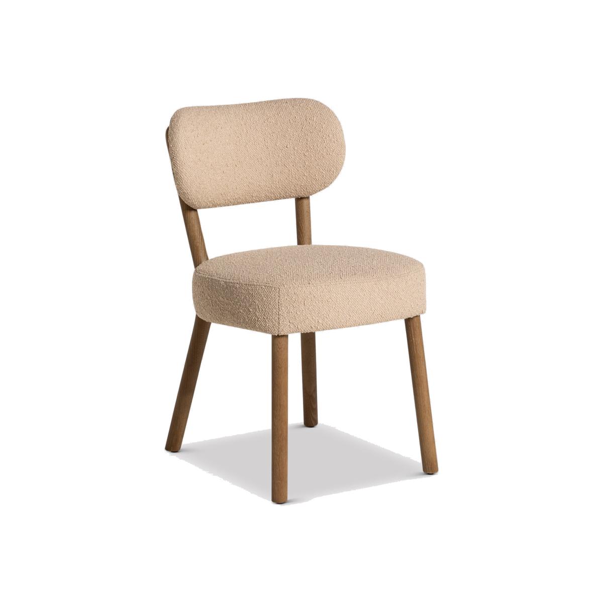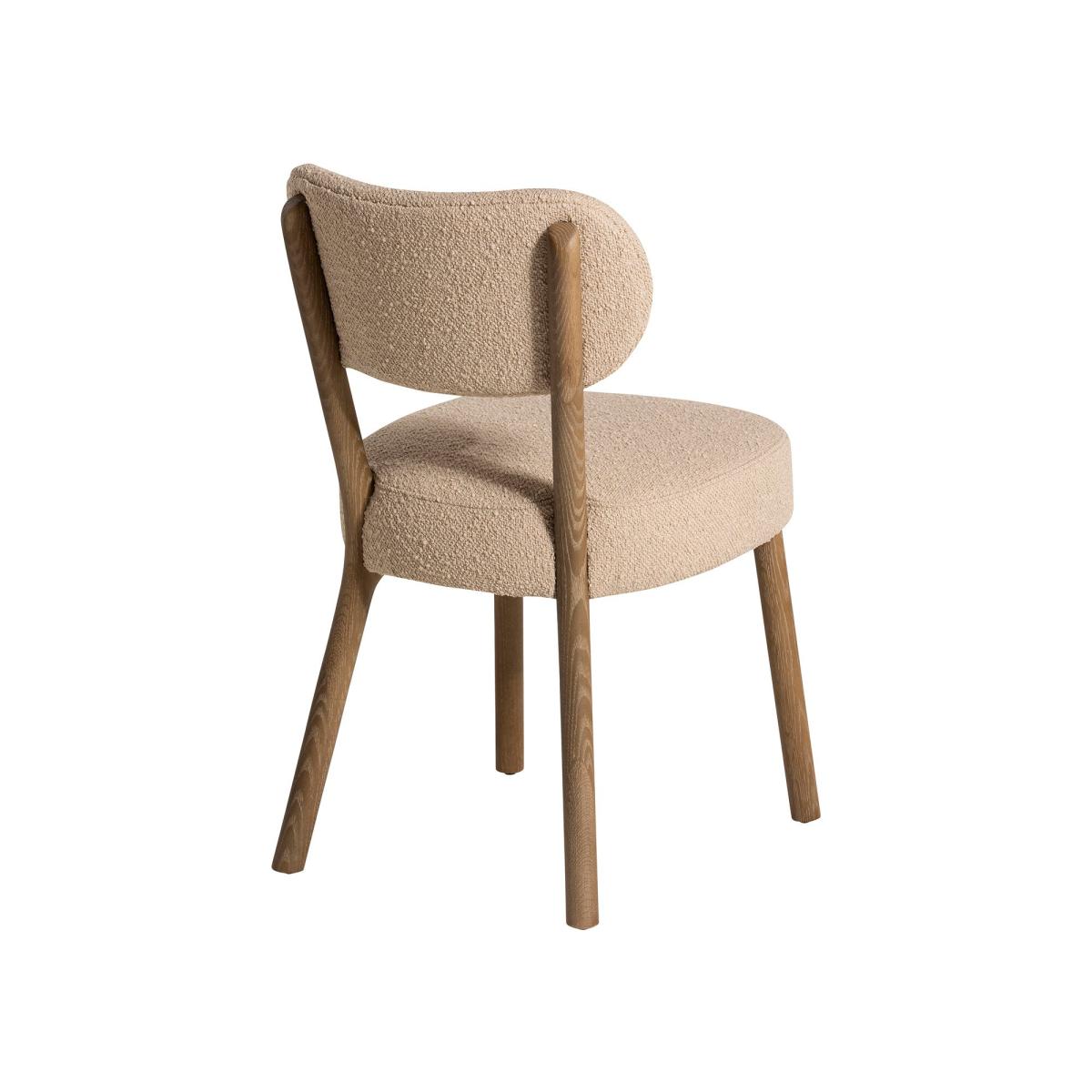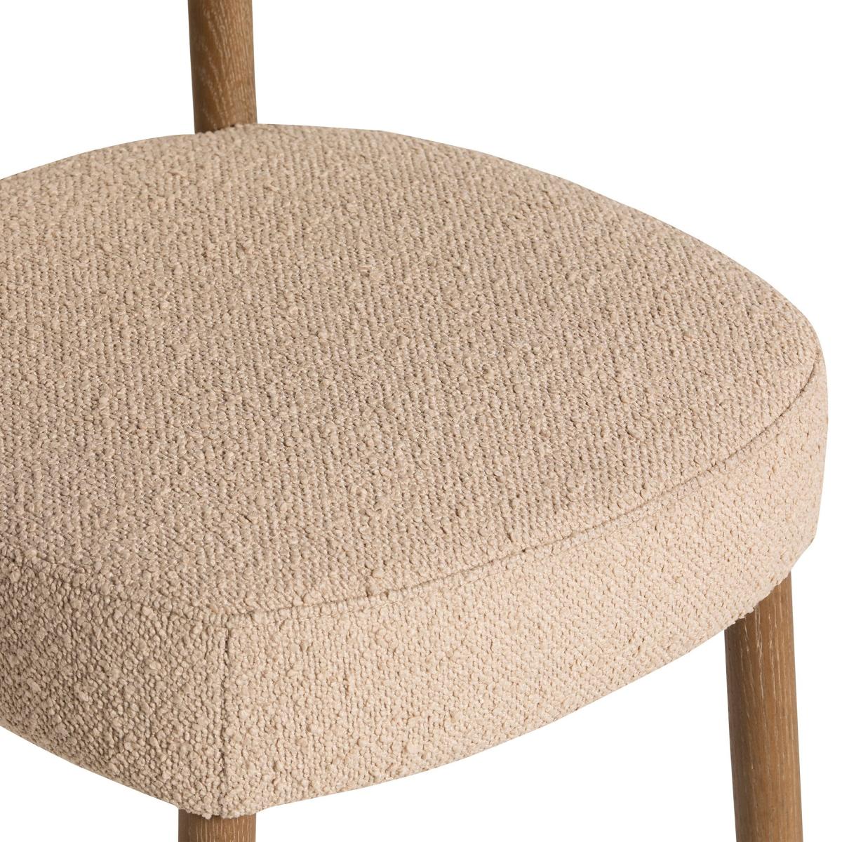 Introducing the Dove Neutral Boucle Dining Chair - a symbol of elegance and comfort for your dining area. Meticulously handcrafted, it showcases a sleek open-back design and is adorned with luxurious neutral boucle fabric. Revel in lasting comfort with its plush polyfiber and supportive foam seat cushion. Supported by robust wood legs finished in a water-based hue, it exudes sophistication and resilience.