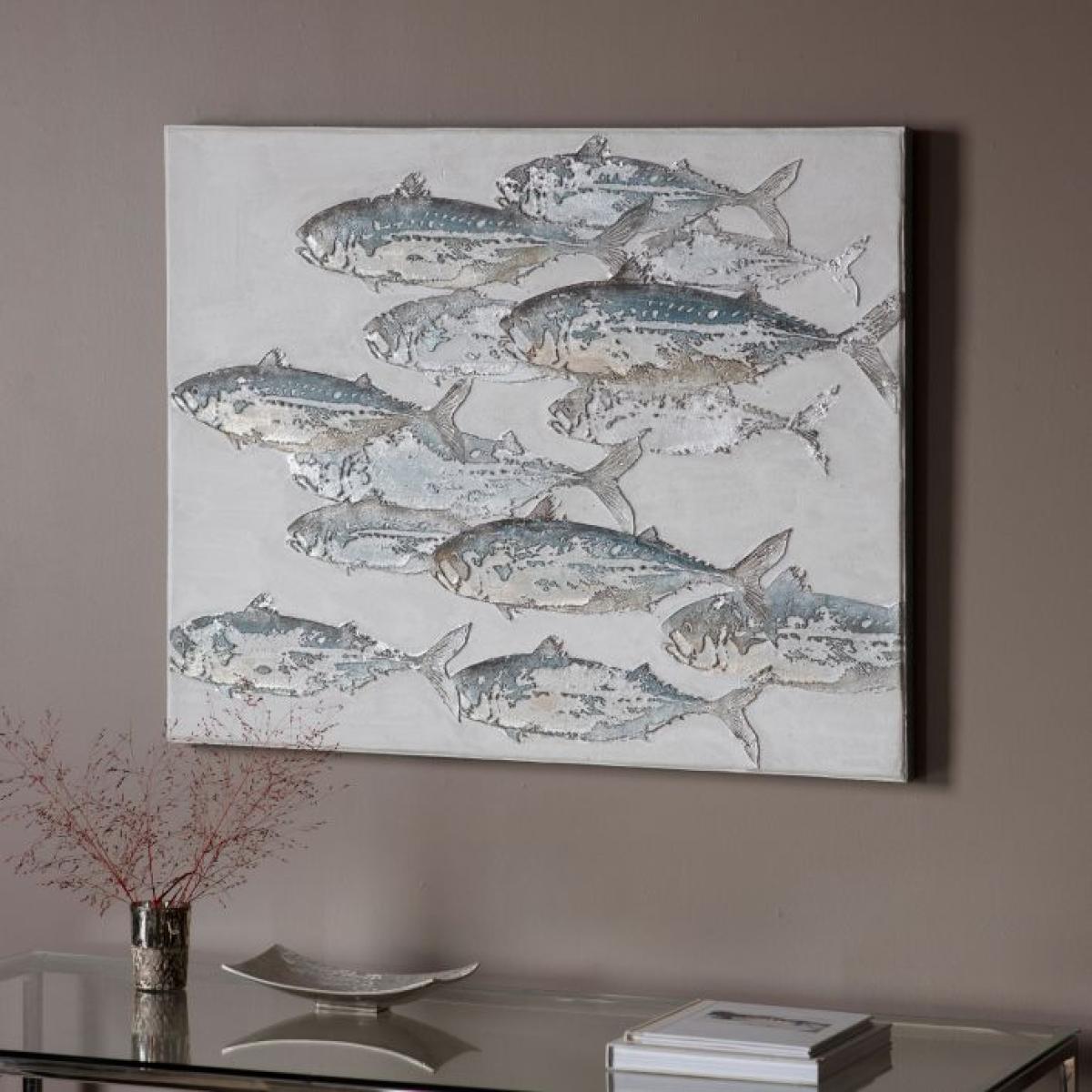 I love this fish canvas for those looking to add a subtle coastal or nautical vibe to their space. It works particularly well in living rooms, kitchens, or even hallways that have a relaxed, nature-inspired feel. The neutral tones with hints of blue make it versatile for both modern and traditional interiors. Practical styling tips include pairing it with light wood furniture or natural textiles to enhance its maritime character. Hanging it at eye level in a prominent spot helps it serve as a focal point without overwhelming the space. Keep surrounding accessories minimal to let this artwork stand out and add an instant touch of maritime charm.