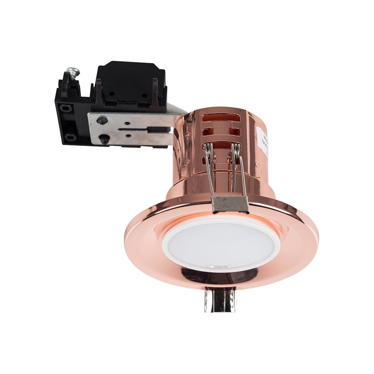 10 x Fire Rated GU10 Downlights in a polished copper effect finish. Features 60 minute fire rating and complete with terminal blocks and pre-fitted spring clips. Supplied with product guidelines and full fitting instructions. Suitable for use with regular halogen or LED GU10 bulbs. Please Note Bulb Not Supplied. Complies with BS EN60598, BS5250, BS476 Parts 20, 21 23. 60 Minutes Protection Against The Spread Of Fire. Note This Fire Rated Downlight is NOT suitable for use with I-joists (engineered timber joists), please check the material of your joists before purchase.
