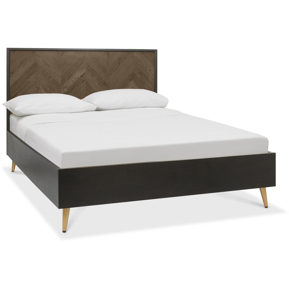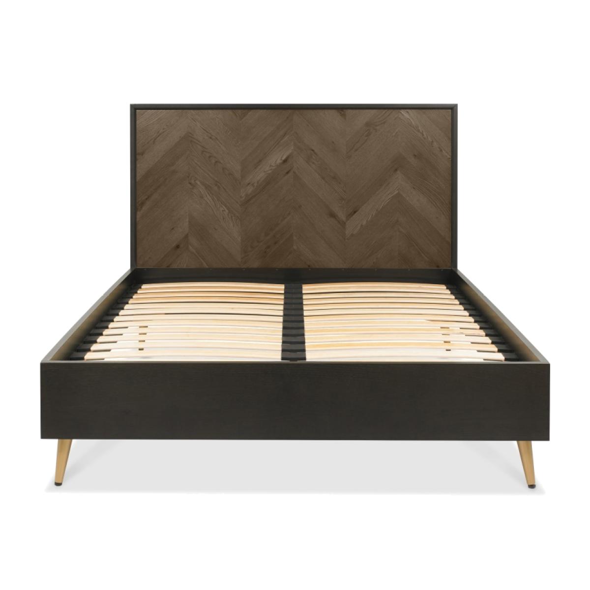 Fusing mid-century and contemporary styling, the Sienna bedroom range features chevron patterned rustic oak veneer headboards, drawer fronts and doors, in a stunning fumed oak finish. Wire-brushed oak veneers frame each piece in a dark peppercorn stain that is also reflected in the colour of the cabinet interiors and bedstead. Contrasting satin brass handles and conical-shaped legs add a glamorous touch to the collection, which is further accentuated with design choices like the mitred and bevelled frames, and soft-close drawer runners. Assembly Required All screens vary in colour reproduction and whilst every effort has been made to display the colour as accurately as possible it is for guidance only. Dimensions Double: Product Depth: 202cm Product Width: 145cm Product Height: 120cm King Product Depth: 211cm Product Width: 159cm Product Height: 120cm Super King Product Depth: 211cm Product Width: 190cm Product Height: 120cm