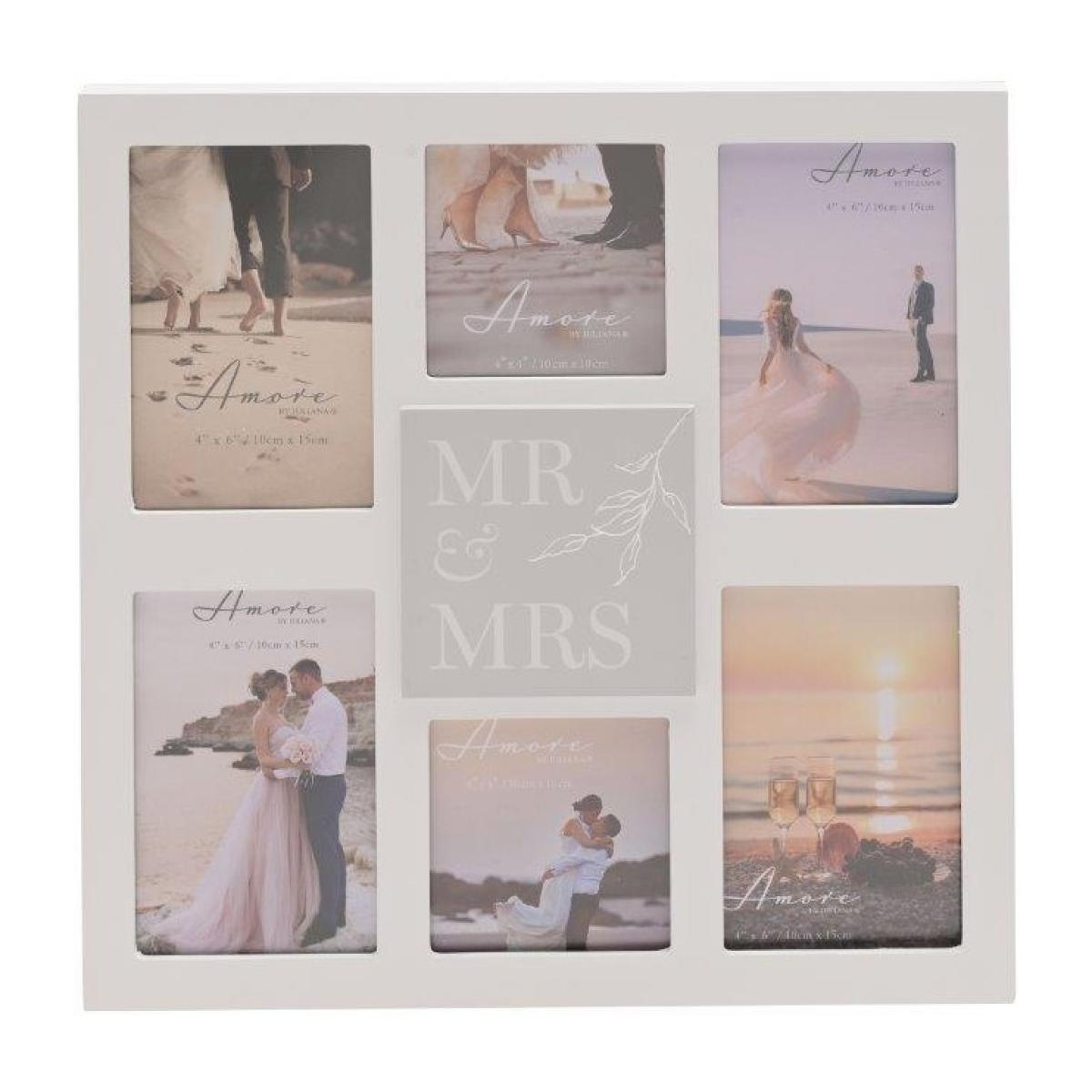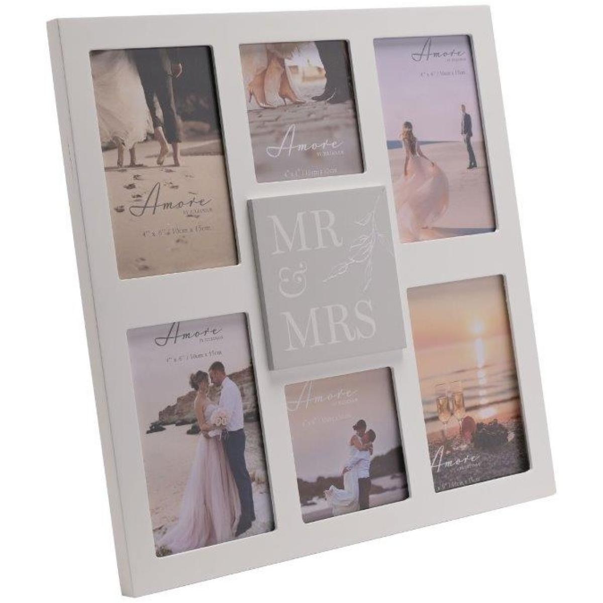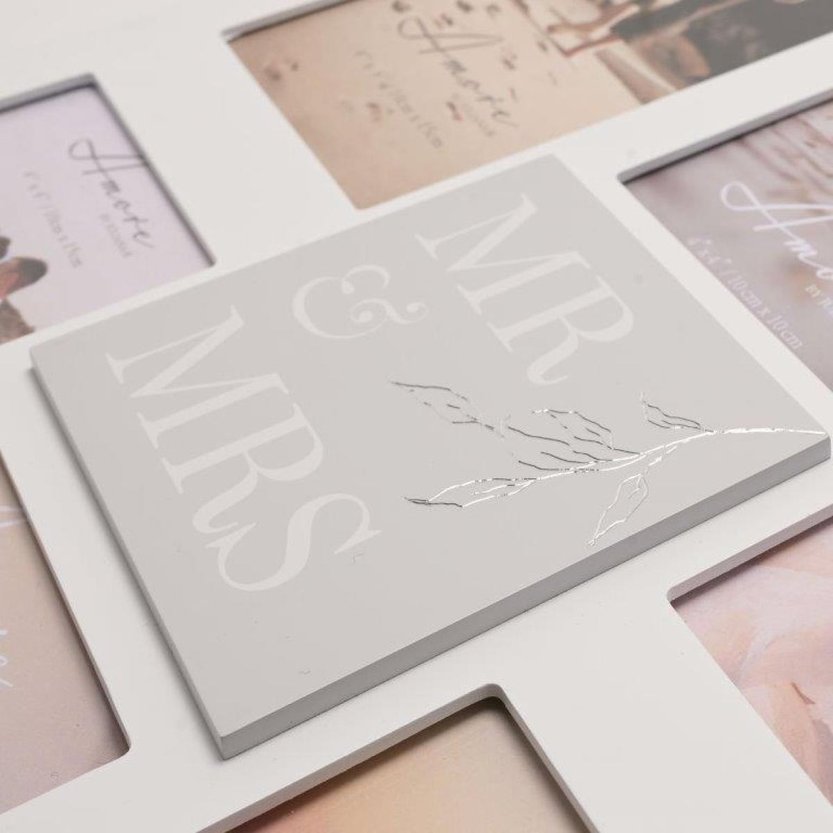 Downtown Amore Multi Apperture Photo Frame 35.5cm Mr and Mrs, Wood, Floral