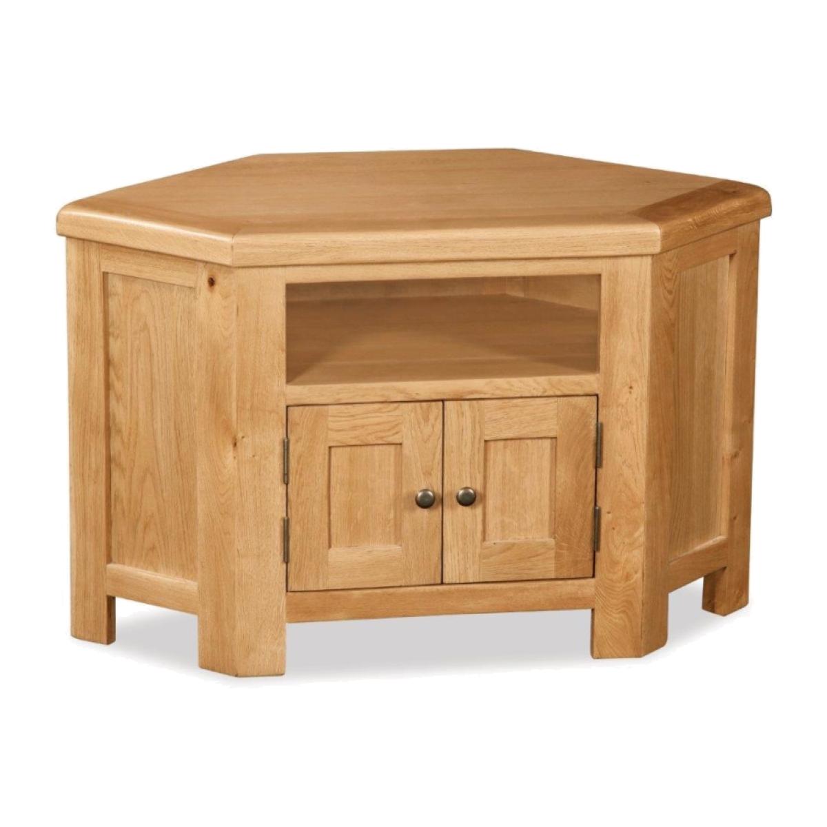 The Ascot Corner TV Unit will be a gorgeous host of your entertainment equipment that will fit in to a corner of your living space perfectly. This Corner TV Unit has door with top shelf can be used to store DVD’s or CD’s. Made of solid oak with a natural finish and a black metal handle giving an elegant and classic feel. The TV Unit has a shelf where you can position your DVD player or satellite box while the two door cupboard offers a handy storage space for your DVDs or games console, keeping them neatly stashed away. The Ascot Corner TV Unit is ideal for beautifully displaying your flat screen TV, and giving you a great view of the screen when spending time with family. Ascot is a proven collection of oak furniture for every room in the house offering a rustic style to your home. Pieces include dining tables, chairs, coffee tables and much more. The slightly rustic waxed finished exudes a feeling of comfort and easy to live with charm. The huge selection of products gives ample scope for finding the right size option for any room. The thick wooden tops add charm and a classic look. These are practical designs coupled with the odd innovative and quirky pieces, attractively and timelessly presented. Height: 65cm Width: 105cm Depth: 55cm