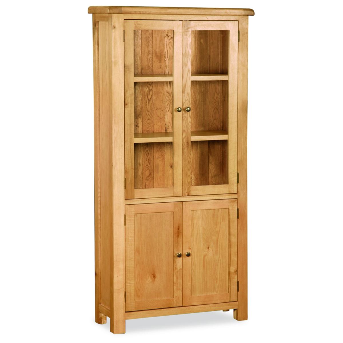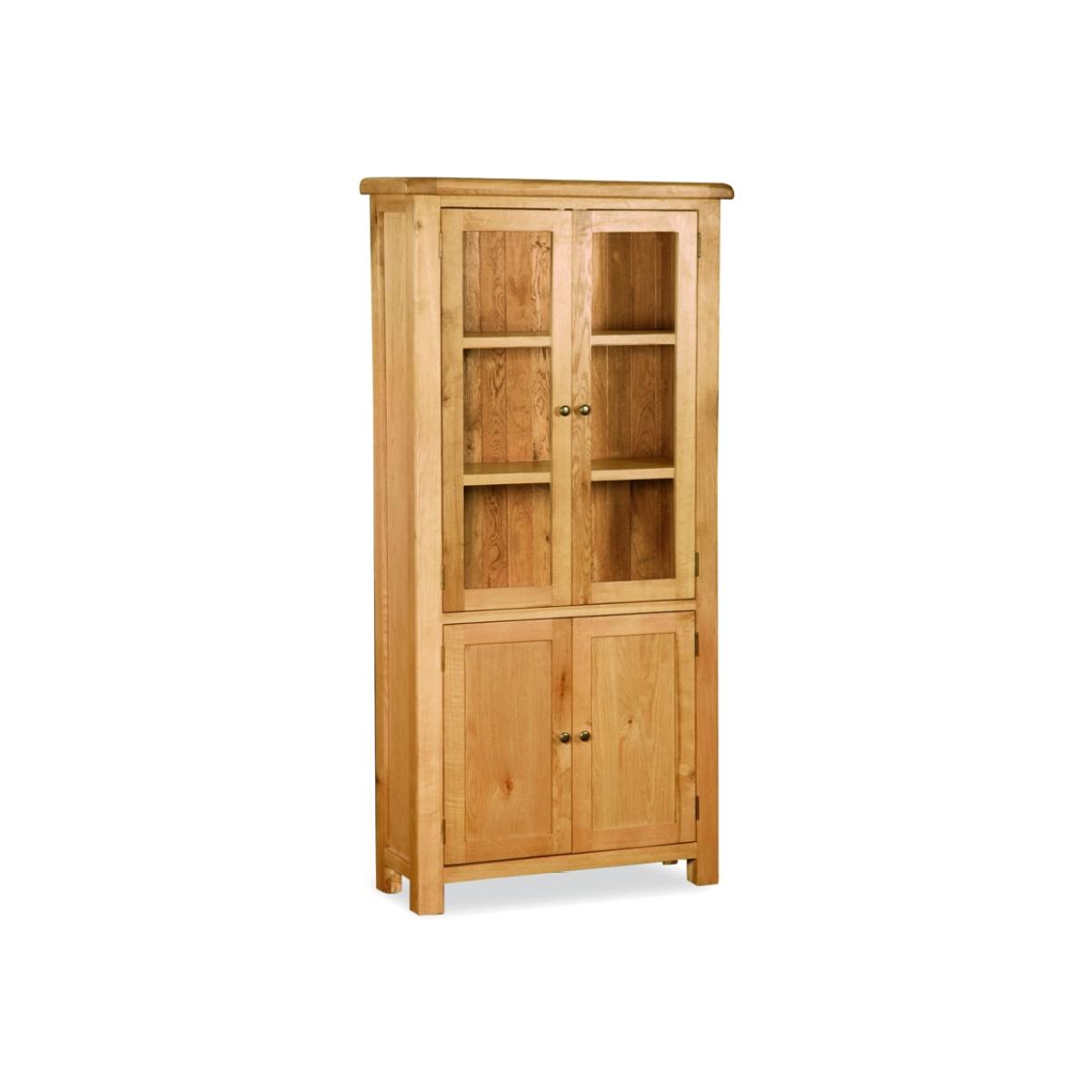 The Ascot Display Cabinet will serve as a practical addition to your living room or any other room of the modern household. This Display Cabinet has been crafted from a luxurious mix of solid oak and oak veneer construction that is incredibly hard wearing, and has a smooth finish allowing you to wipe away any stains or spills. The Ascot Display Cabinet has 2 glass doors inside shelves for showing off your photos and ornaments inside and 2 lower cabinets for storing any larger items such as pots and pans, and the both doors have antique round handles for opening them out wide. The Ascot Display Cabinet is incredibly durable and hard wearing, and is kept firmly supported upon sturdy legs. Ascot is a proven collection of oak furniture for every room in the house offering a rustic style to your home. Pieces include dining tables, chairs, coffee tables and much more. The slightly rustic waxed finished exudes a feeling of comfort and easy to live with charm. The huge selection of products gives ample scope for finding the right size option for any room. The thick wooden tops add charm and a classic look. These are practical designs coupled with the odd innovative and quirky pieces, attractively and timelessly presented. Height: 195cm Width: 95cm Depth: 37cm