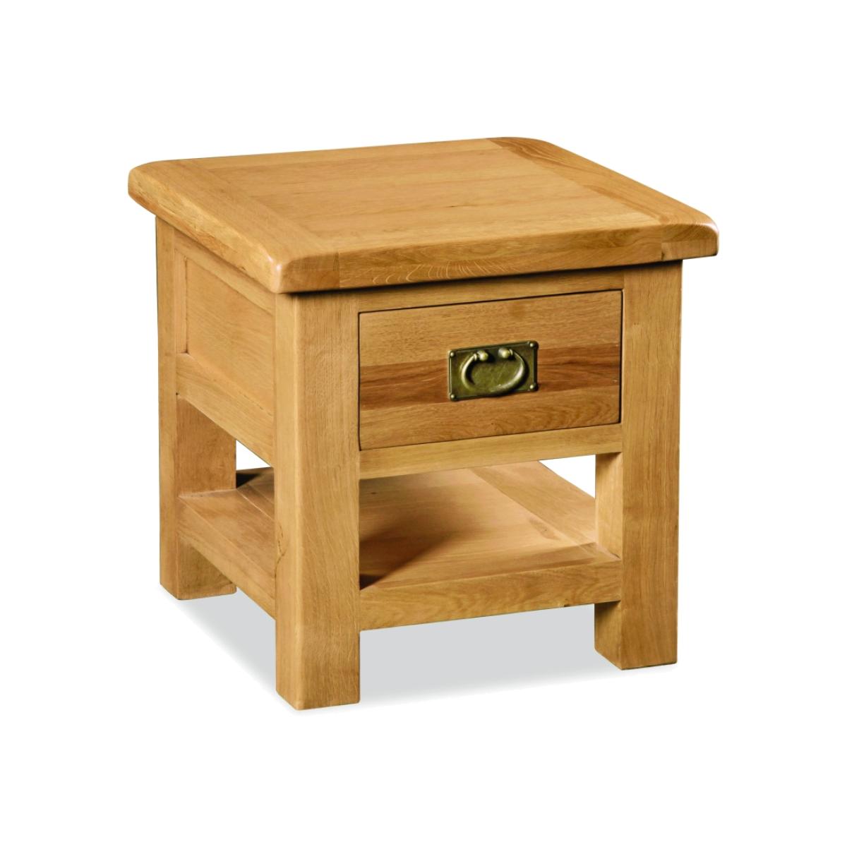 The Ascot Lamp Table with Drawer is small and beautiful solution to your living room storage. Crafted from solid oak with natural finish this lamp table has added strength and support. The Ascot Lamp Table can be easily moved about your home for placing it in the best position. The Ascot Lamp table has a handy tabletop surface with an additional storage drawer, perfect for hiding away clutter in your favourite living space. The Ascot Lamp Table will look great alongside your sofa or armchair and will make for a perfect spot for any decorative items, a table lamp, or simply a handy place to rest your cup of tea while watching TV. Ascot is a proven collection of oak furniture for every room in the house offering a rustic style to your home. Pieces include dining tables, chairs, coffee tables and much more. The slightly rustic waxed finished exudes a feeling of comfort and easy to live with charm. The huge selection of products gives ample scope for finding the right size option for any room. The thick wooden tops add charm and a classic look. These are practical designs coupled with the odd innovative and quirky pieces, attractively and timelessly presented. Height: 50cm Width: 50cm Depth: 50cm
