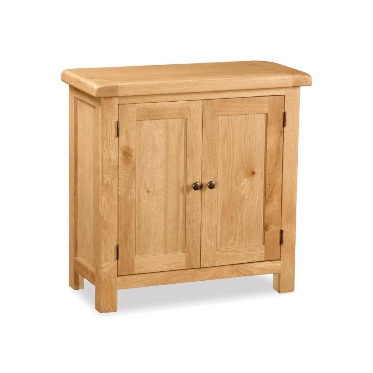 The Ascot oak two door mini cupboard adds rustic elegance and is the perfect addition to any home. Fitting beautifully into corners say goodbye to wasted space, Ideal if you’re looking for extra storage space with two roomy cupboards offering lots of space for your everyday items with a fixed central shelf, with a solid wide surface to show off your family photos, ornaments, a Lamp or a vase of flowers. Ascot is a proven collection of oak furniture for every room in the house offering a rustic style to your home. Pieces include dining tables, chairs, coffee tables and much more. The slightly rustic waxed finished exudes a feeling of comfort and easy to live with charm. The huge selection of products gives ample scope for finding the right size option for any room. The thick wooden tops add charm and a classic look. These are practical designs coupled with the odd innovative and quirky pieces, attractively and timelessly presented. Constructed from a luxurious mix of solid oak and oak veneer. Height: 80cm Width: 80cm Depth: 38cm