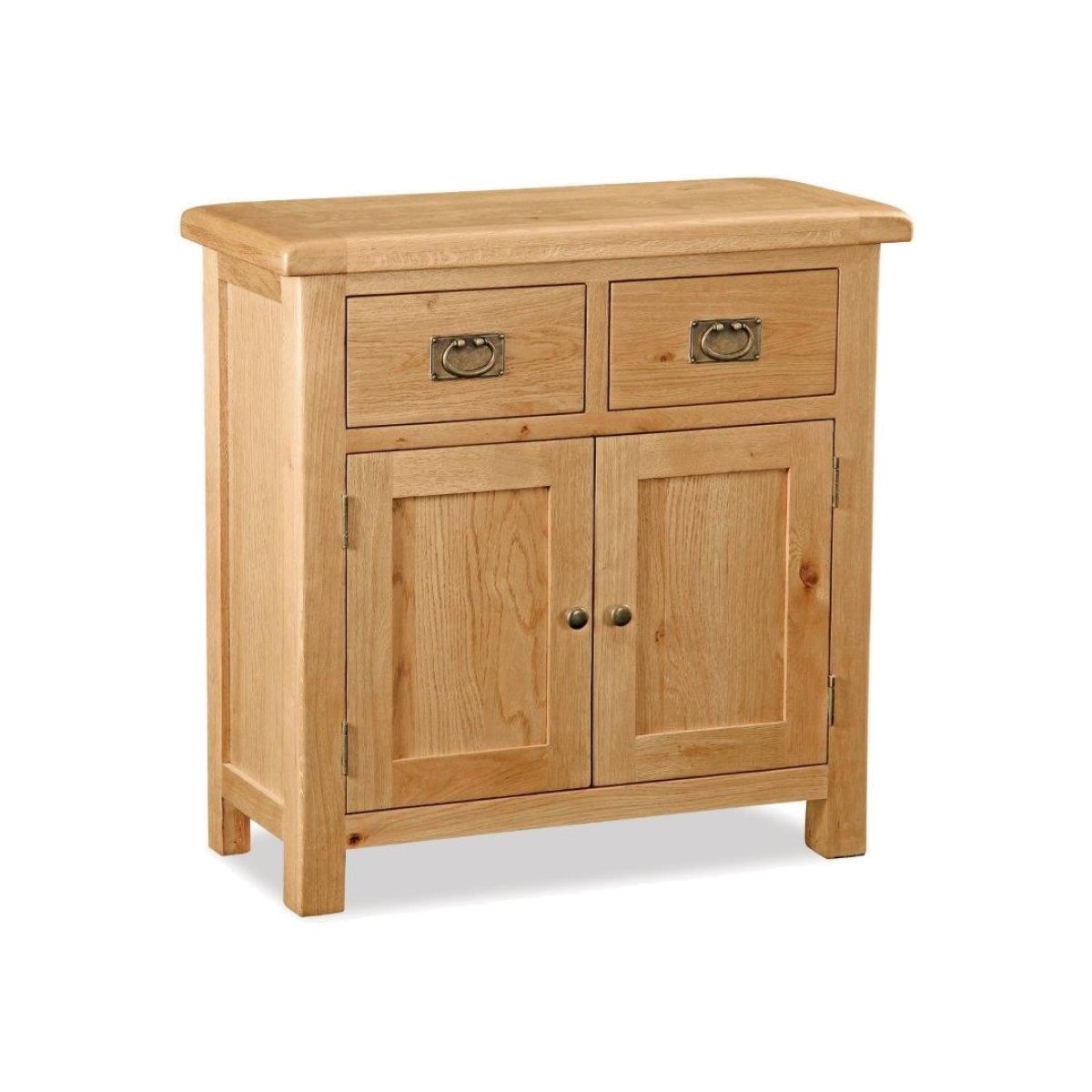 The Ascot oak Petite 2 Door Sideboard adds rustic elegance to your living room or dining room. Two generously sized drawers and two roomy Cupboards offering lots of space for your everyday kitchen items with a fixed central self, with a solid wide surface to show off your family photos or ornaments. Built using solid american white oak and high quality real oak veneers to add strength with dovetailed draw joints used throughout. A waxed finish that shows off the wood’s warm colouring, rich grain and natural beauty. Ascot is a proven collection of oak furniture for every room in the house offering a rustic style to your home. Pieces include dining tables, chairs, coffee tables and much more. The slightly rustic waxed finished exudes a feeling of comfort and easy to live with charm. The huge selection of products gives ample scope for finding the right size option for any room. The thick wooden tops add charm and a classic look. These are practical designs coupled with the odd innovative and quirky pieces, attractively and timelessly presented. Height: 85cm Width: 85cm Depth: 38cm