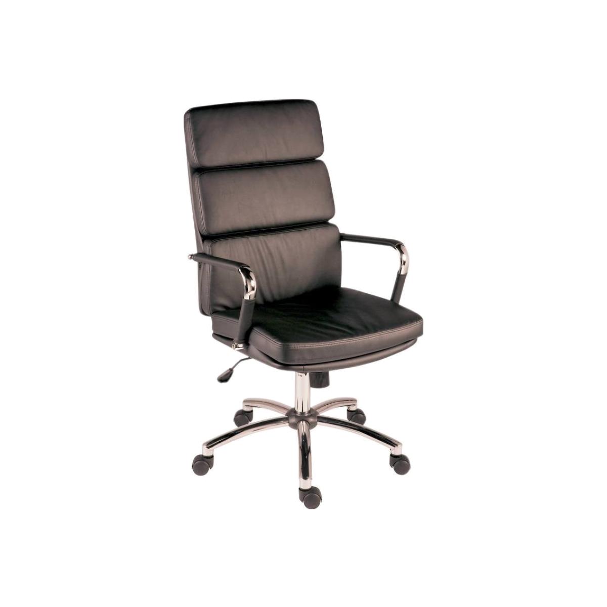 This retro style executive office chair is upholstered in supple faux leather with a bright chrome support base and armrests. It features a gas lift seat height mechanism and reclining function with control tilt tension to suit your needs.  Retro style executive chair Supple black faux leather Bright chrome arms and base Removable arm covers Heavy Duty gas operated lift. Seat height from 47 - 54cms. Inside back height 63cms. Simple self-assembly required
