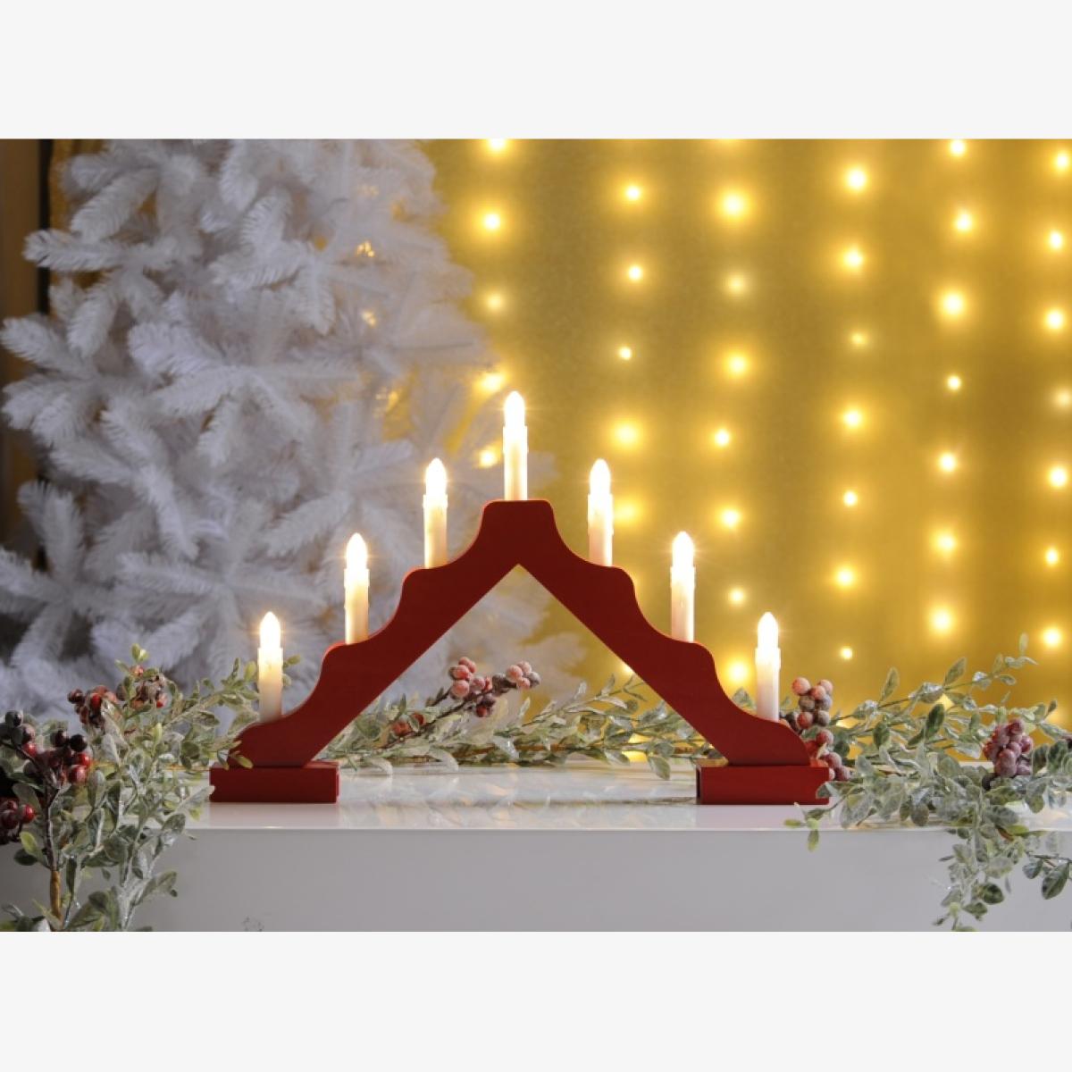 Downtown Festive Led Red Wooden Candle Bridge, Wood
