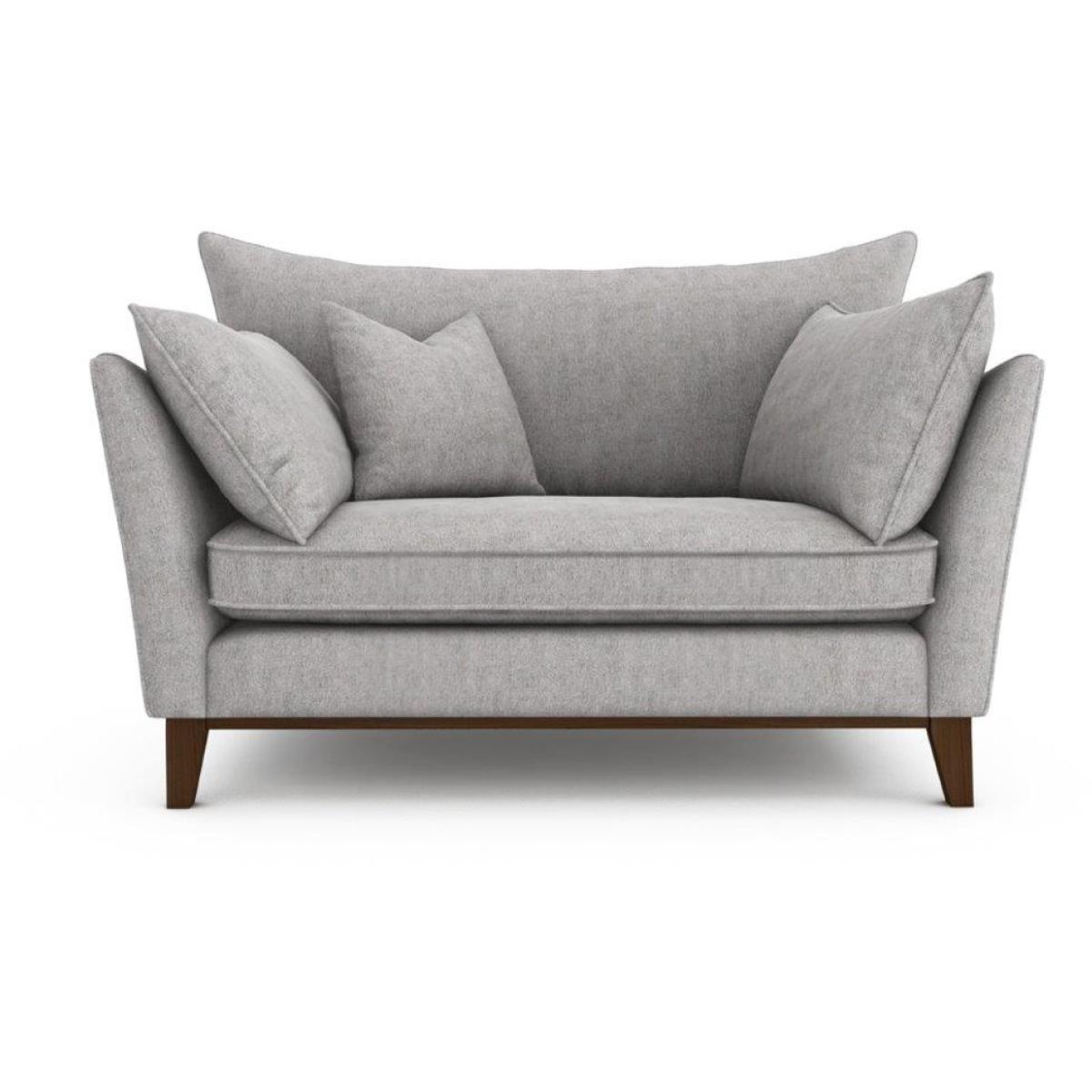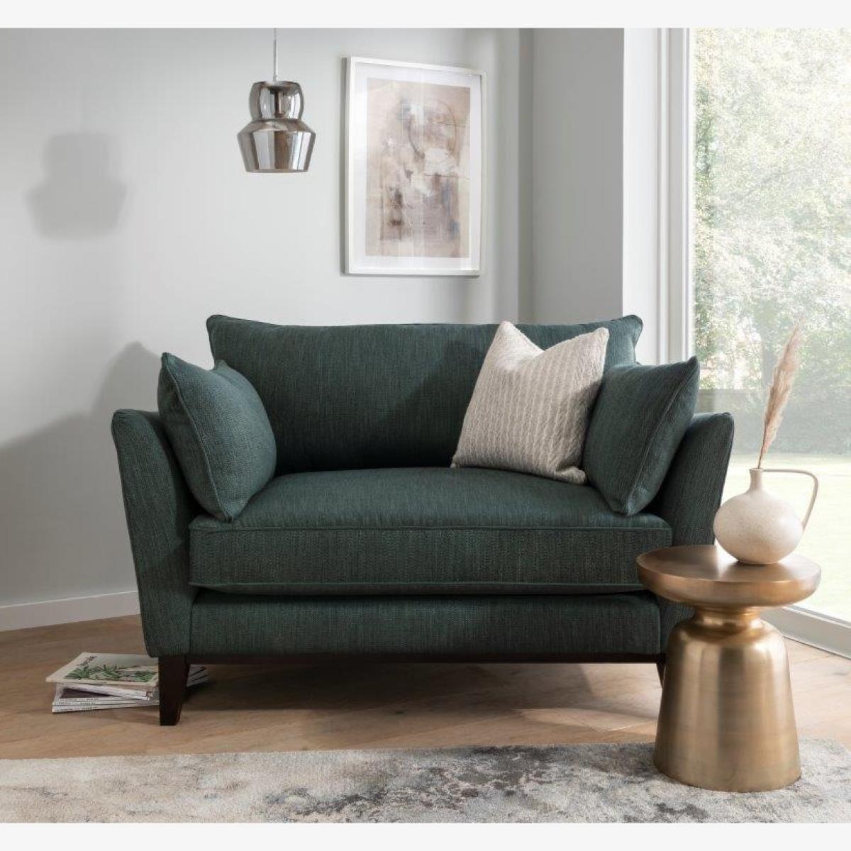 The Finch is an exciting new range which offers an effortless blend of contemporary cool with subtle Scandinavian details. For example, it features an angled arm profile and a piped border creating a distinctive yet tailored look. While its frame is made from Seasonal Hardwood carefully selected from traceable and sustainable sources. All key joints are securely glued, screwed and stapled. The arms are slim with an angled arm profile, upholstered with foam, whilst the back has hand tensioned elastic webbing covered with foam. The seat has traditional sinuous zig-zag springs covered with foam whereas the seat cushions are foam filled for superior comfort and support, all back cushions are filled with high quality fibre and the scatters are 100% duck feather. Key Features: 1 x 40cm Scatters included as standard Feet: Available in Weathered Oak and American Walnut wood finishes High Quality Fibre Back Cushions 100% Duck Feather Scatters Snuggler Dimensions: Height: 90cm Width: 140cm Depth: 93cm Seat Height: 46cm Seat Width: 106cm Seat Depth: 58cm All screens vary in colour reproduction and whilst every effort has been made to display the colour as accurately as possible it is for guidance only.