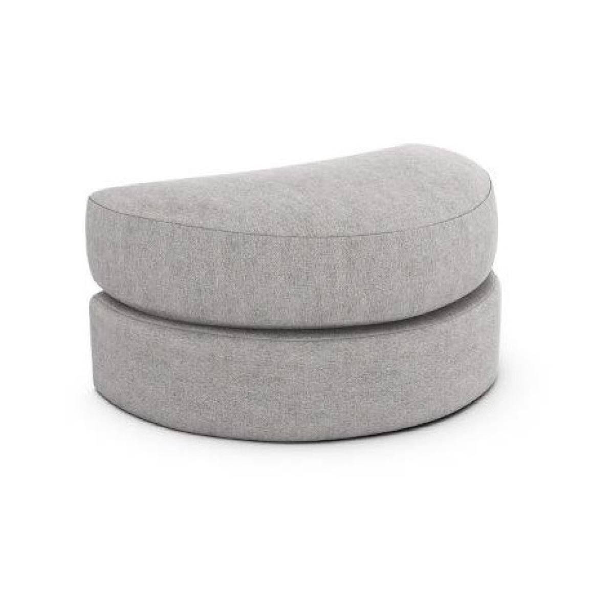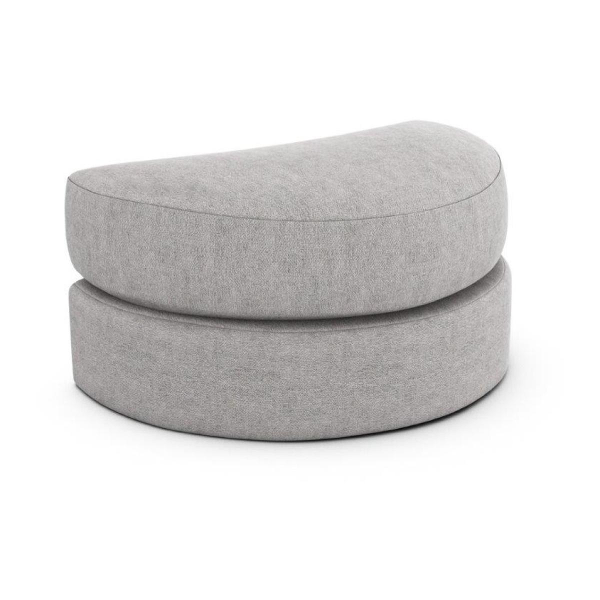 With a significant desire for large, low slung units inspired by European design and city living, the Freddie is a range of outstanding quality and available in a multitude of configurations and options. Frame - A traditional hardwood construction, pinned, screwed and glued. Feet - This model has a chrome foot finish or a choice of 5 wooden finishes. Seat - The seats consist of traditional sinuous zig zag springs covered with layers of comfy foam. The Freddie Cuddler Footstool is designed to pair with the Freddie Cuddler Swivel Chair. Freddie Cuddler Footstool Made in the UK Available in a choice of fabrics Feet available in a choice of finishes Dimensions - W: 99cm x D: 72cm x H: 47cm